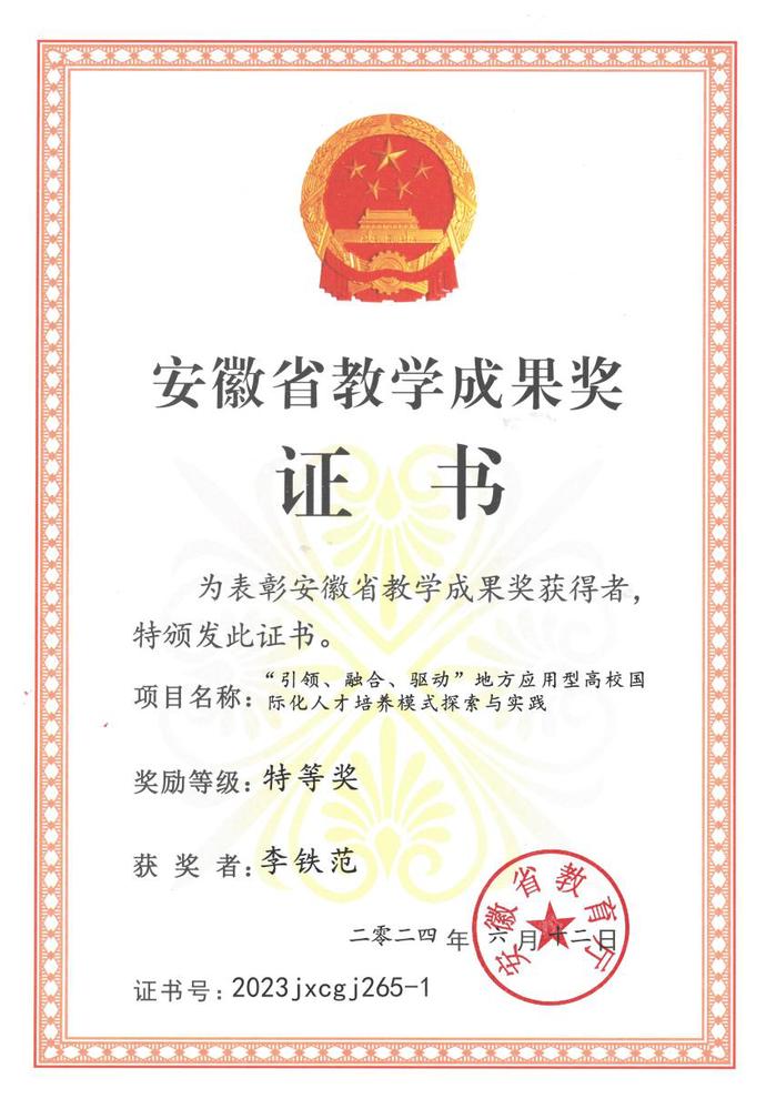 2021年12月,我校荣获“安徽省教育外事工作先进单位”称号