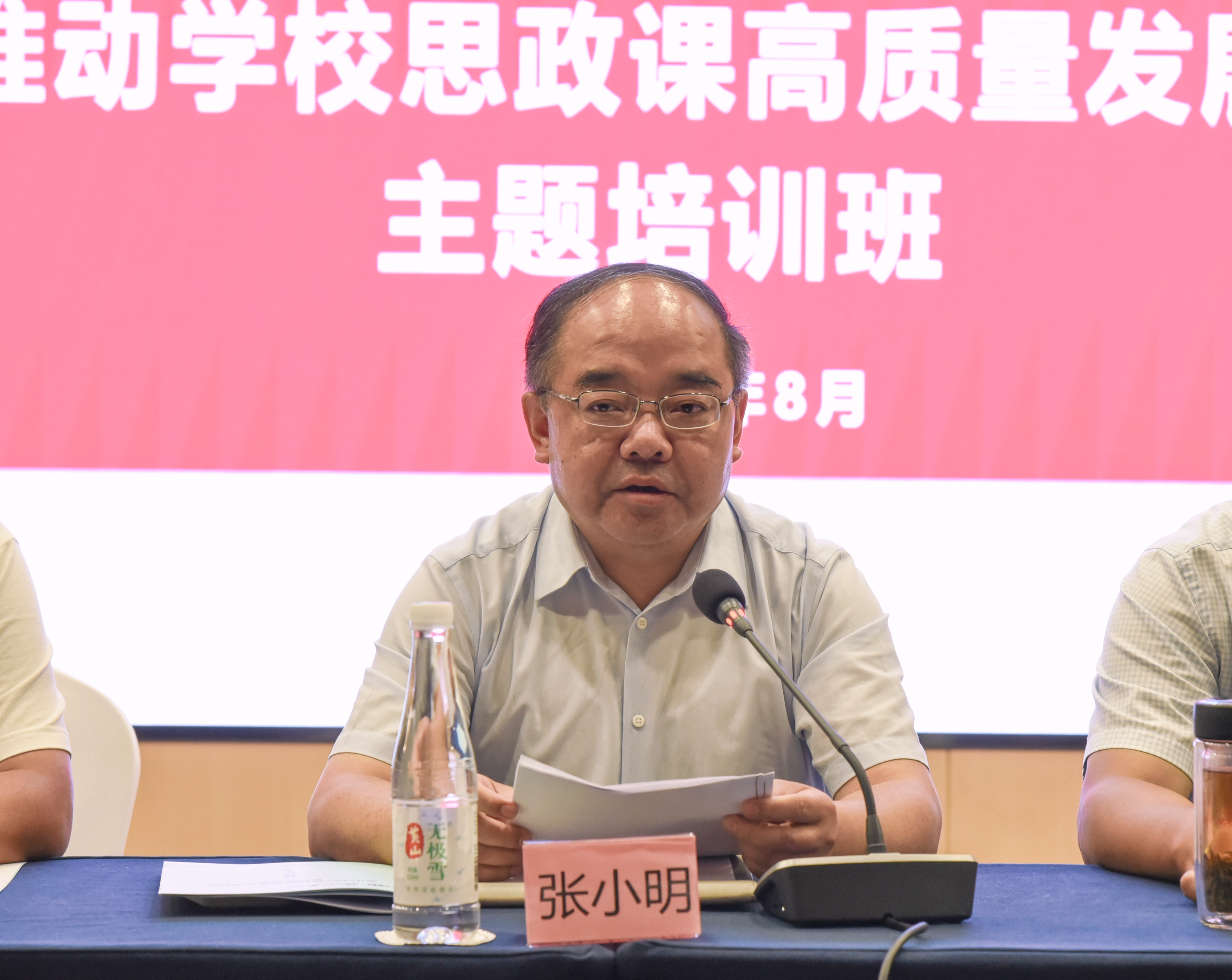张小明作开班动员讲话,他代表学校党委向远道而来的专家学者表示热烈欢迎,向矢志不渝投身思政教学一线的各位思政课教师表示亲切慰问和衷心感谢。他指出,新时代新征程对学校思政课建设提出了新任务新要求。此次培训,既是学习贯彻习近平总书记对思政课建设的重要指示和新时代学校思政课建设推进会精神的一次深度学习会,更是全面落实中央和省委决策部署的工作动员会。他希望全体学员珍惜难得的学习机会,虚心学习、认真思考,圆满完成各项学习任务。以学习的收获激励干事创业的激情,把学习成果转化为今后工作思路和举措,勇毅前行,踔历奋发,笃行不怠,为学校地方应用型高水平大学建设添砖加瓦。