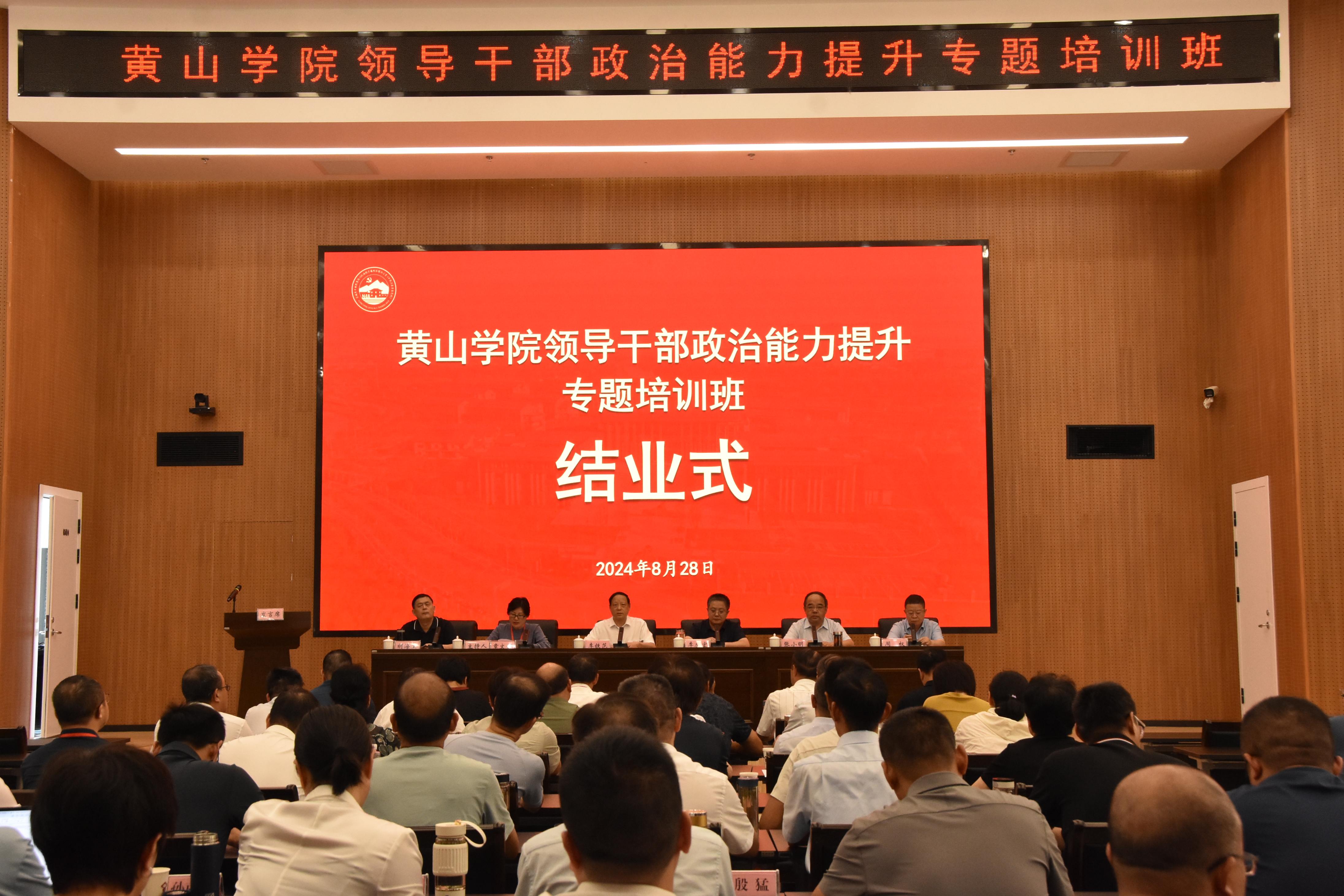 8月28日下午,我校领导干部政治能力提升专题培训班圆满结业。校领导李铁范、李庆宏、章文静、张小明、胡海生出席结业式。校党委书记李铁范作总结讲话,党委副书记章文静主持结业式。