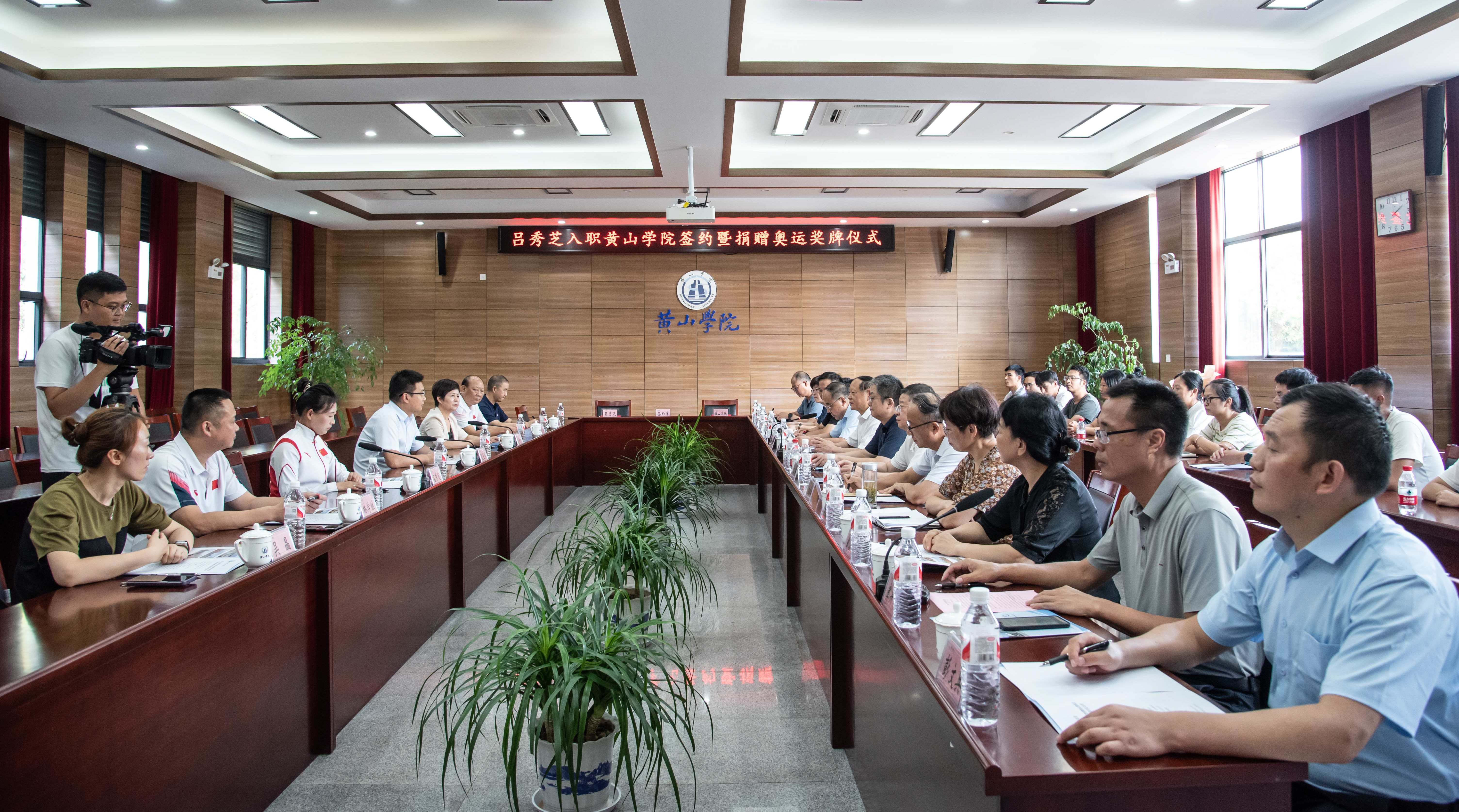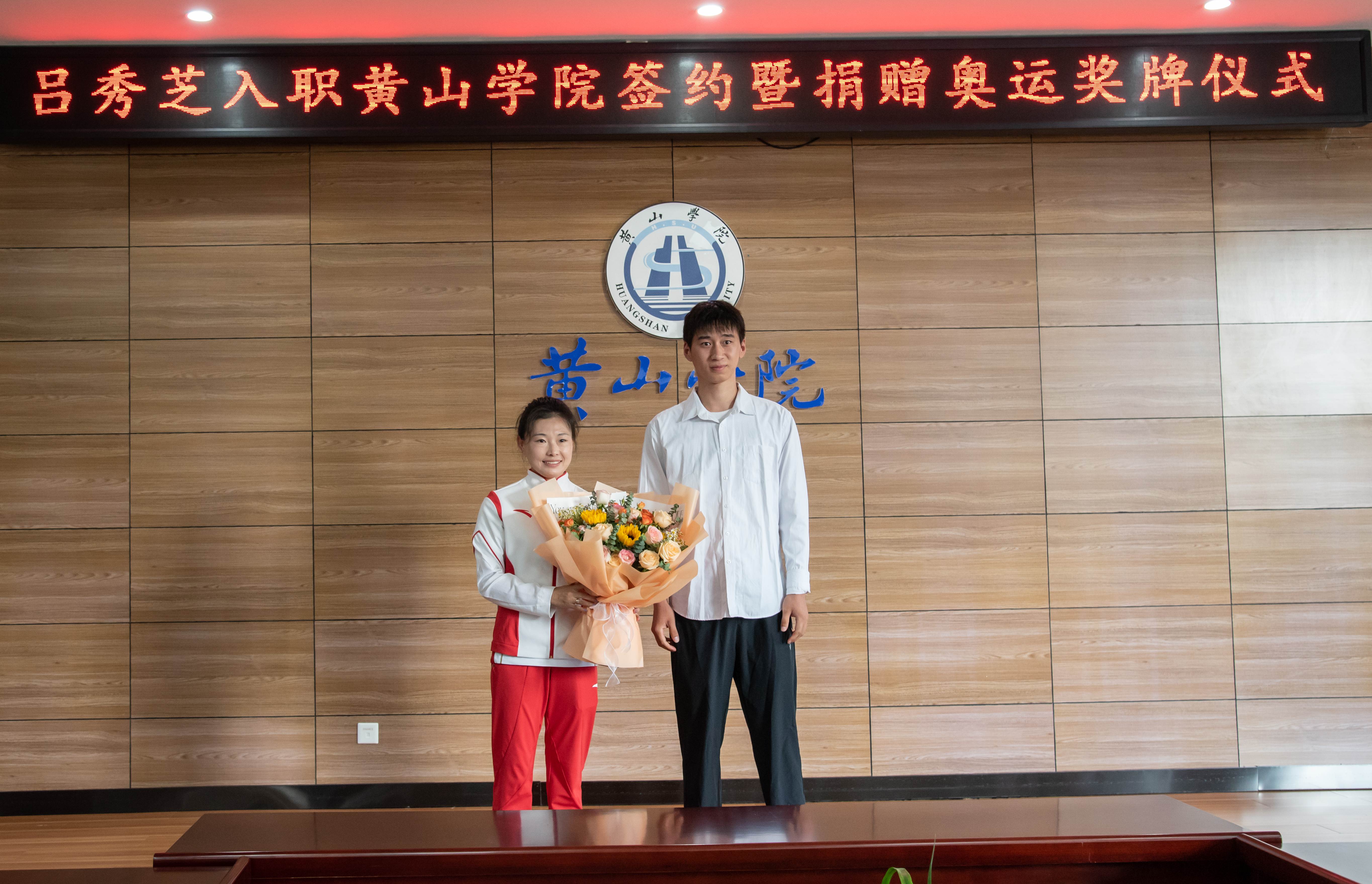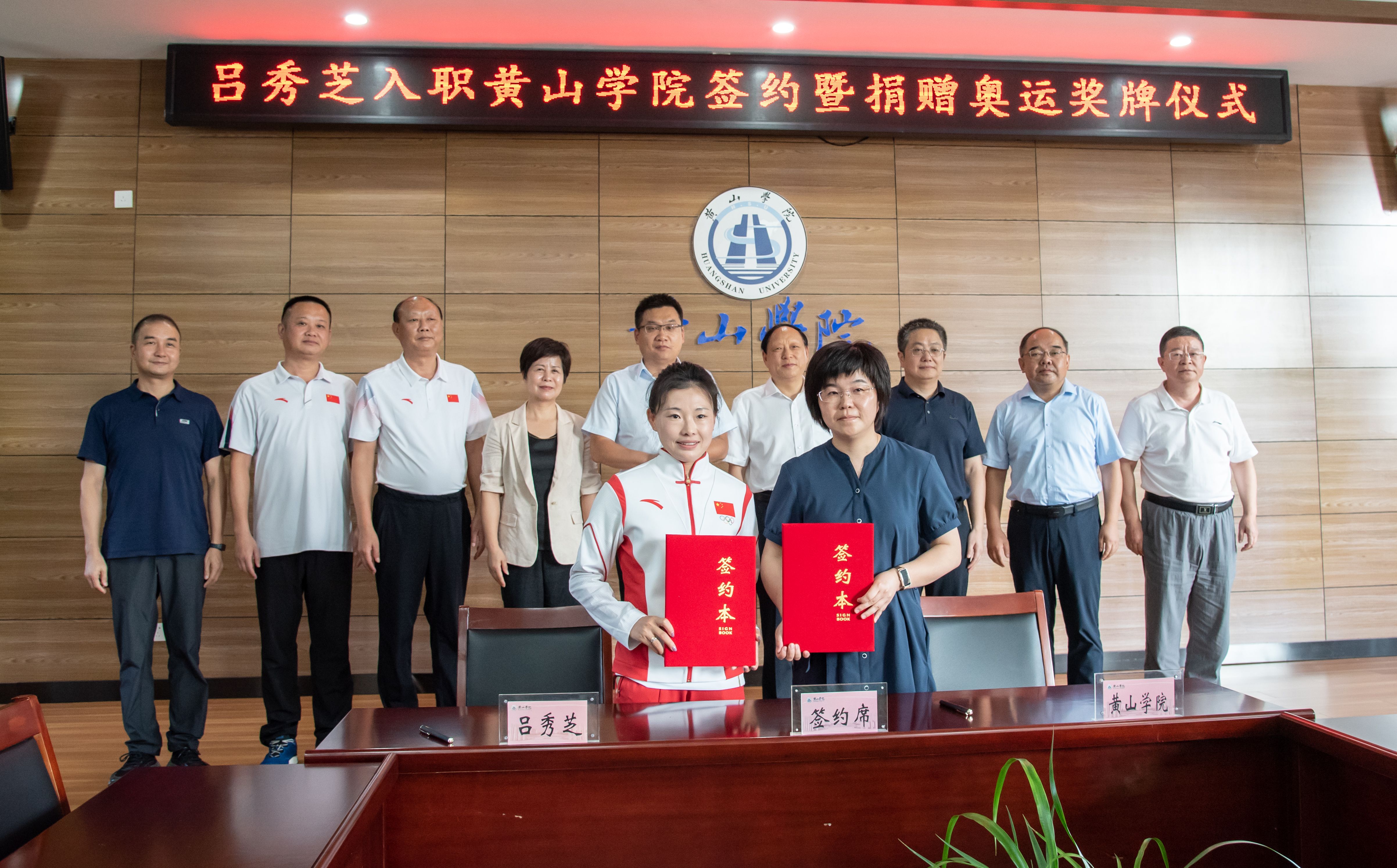 9月3日下午,吕秀芝入职黄山学院签约暨捐赠奥运奖牌仪式在我校文昌楼南楼108会议室举行。黄山市人民政府副市长张亚强,黄山市体育局党组书记、局长宣红燕,我校党委书记李铁范,党委副书记、院长李庆宏,党委委员、副院长张小明,中国竞走名将吕秀芝出席仪式。仪式由张小明主持。