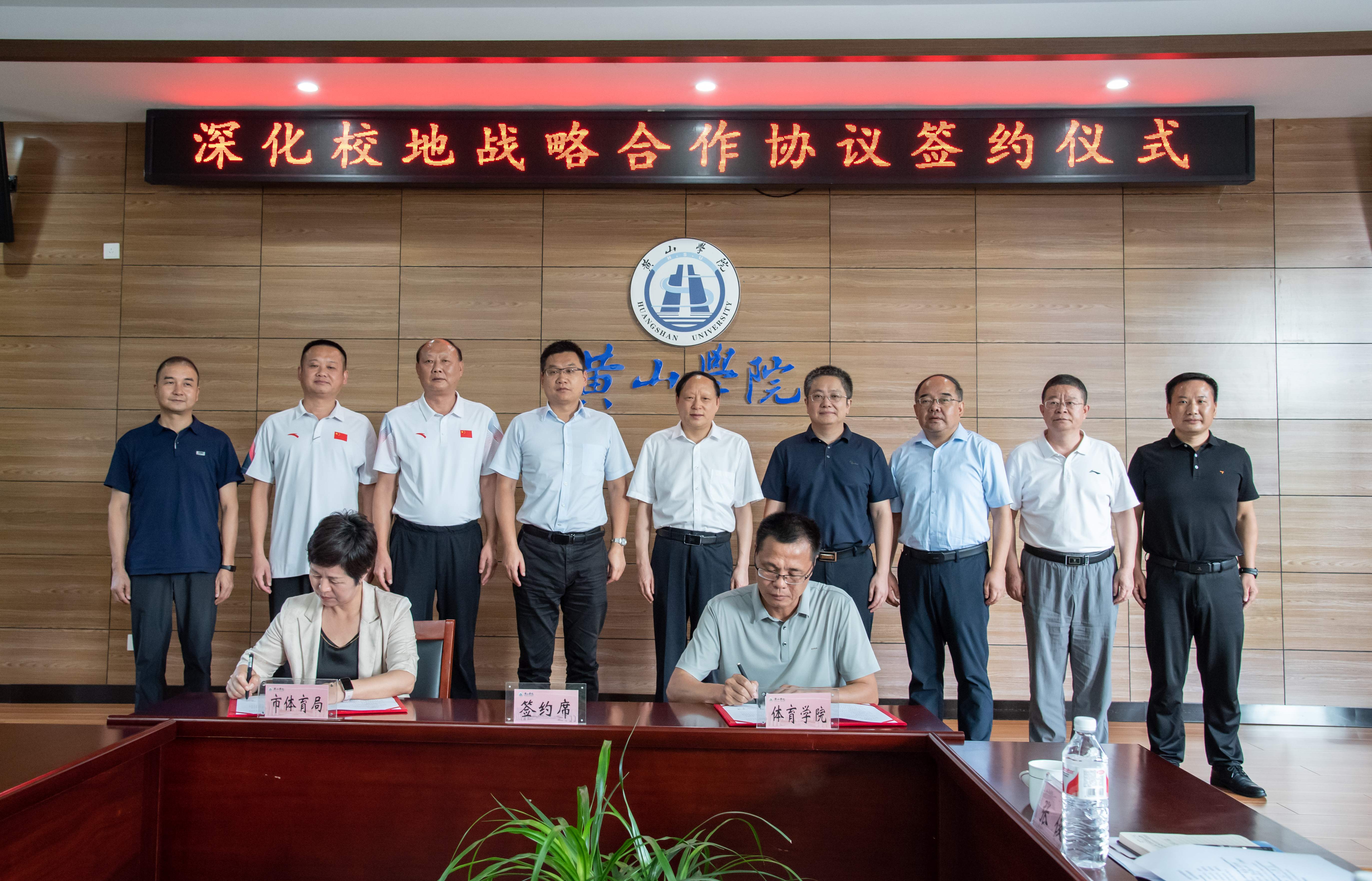 黄山市体育局相关负责人以及我校办公室、组织部、宣传部、人事处、教务处、学生处、工会、体育学院等相关负责人参加签约仪式。