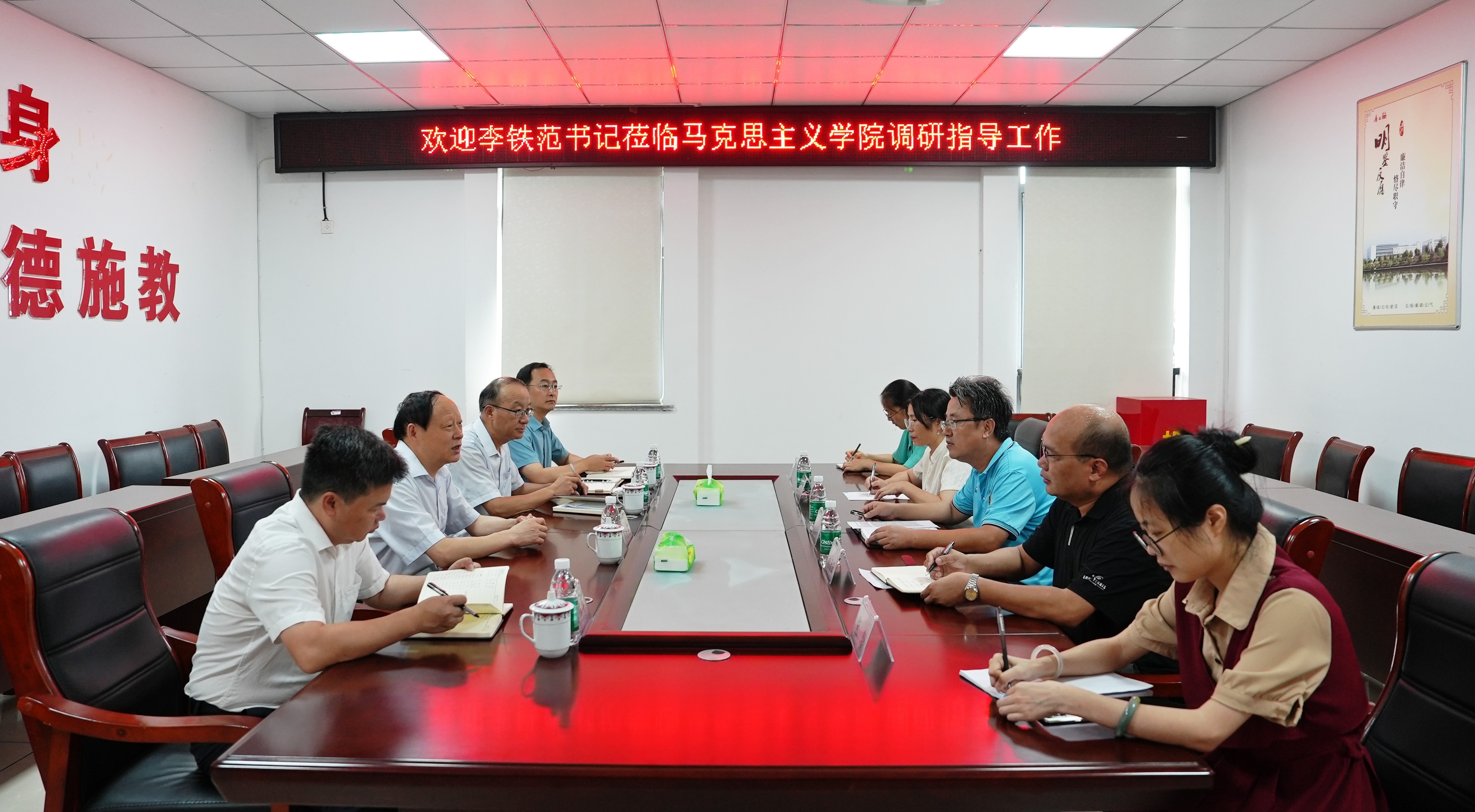李铁范一行还参观了马克思主义学院展陈室和旅游学院智慧党建展示、实验实训室等地。办公室、宣传部、教务处负责同志陪同调研,被调研学院领导班子成员、教研室主任、专业负责人和部分教师、辅导员代表参加座谈会。
