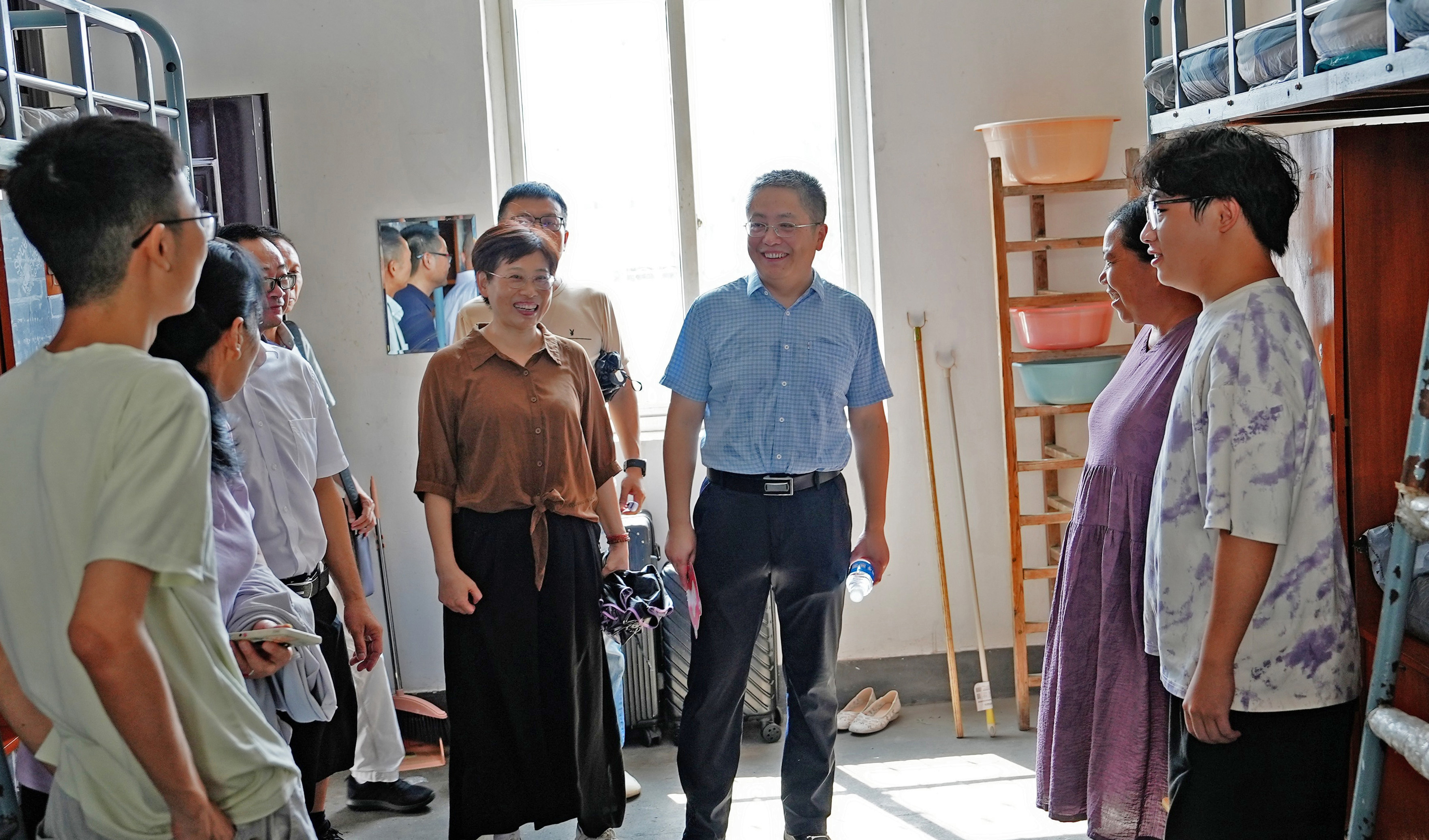 在学生餐厅,校领导对环境卫生、原材料采购、饭菜质量、食品安全等进行仔细检查,要求管理和服务人员要让新生吃得好、吃得放心。在新生宿舍,校领导实地查看宿舍生活环境,与新生及家长亲切交流。校领导勉励新生尽快转变角色,适应大学生活,合理规划大学生涯。校领导请家长放心,表示学校将为学生提供良好的学习和生活条件,保障学生顺利完成学业。