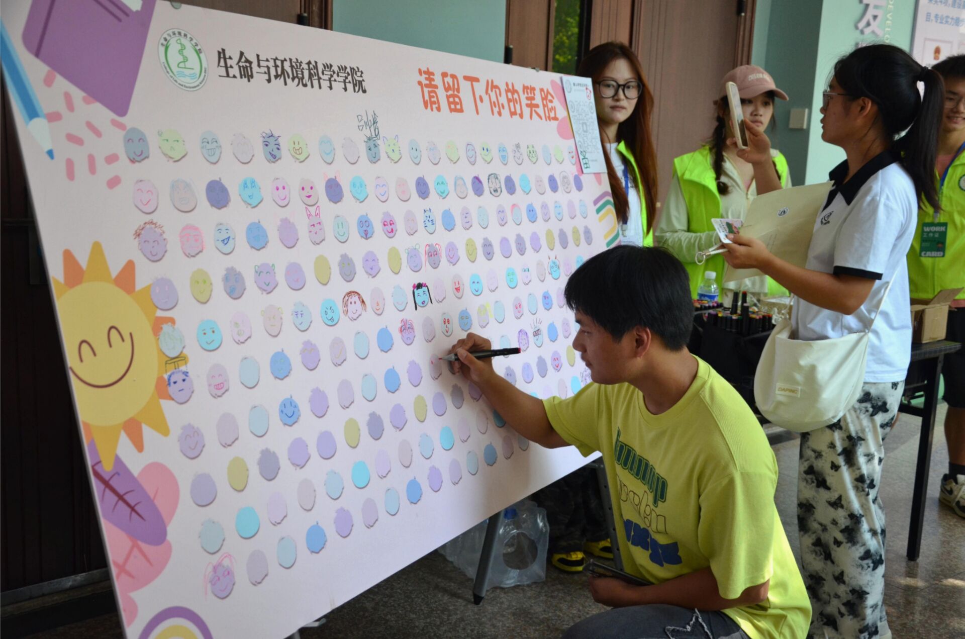 本次迎新中,学校别出心裁,用新生名字制作宣传板。各学院还精心为家长和新生们准备了特色“打卡”地。合影拍照框、拍照手举牌、签名墙等,吸引许多新生前来打卡留念。