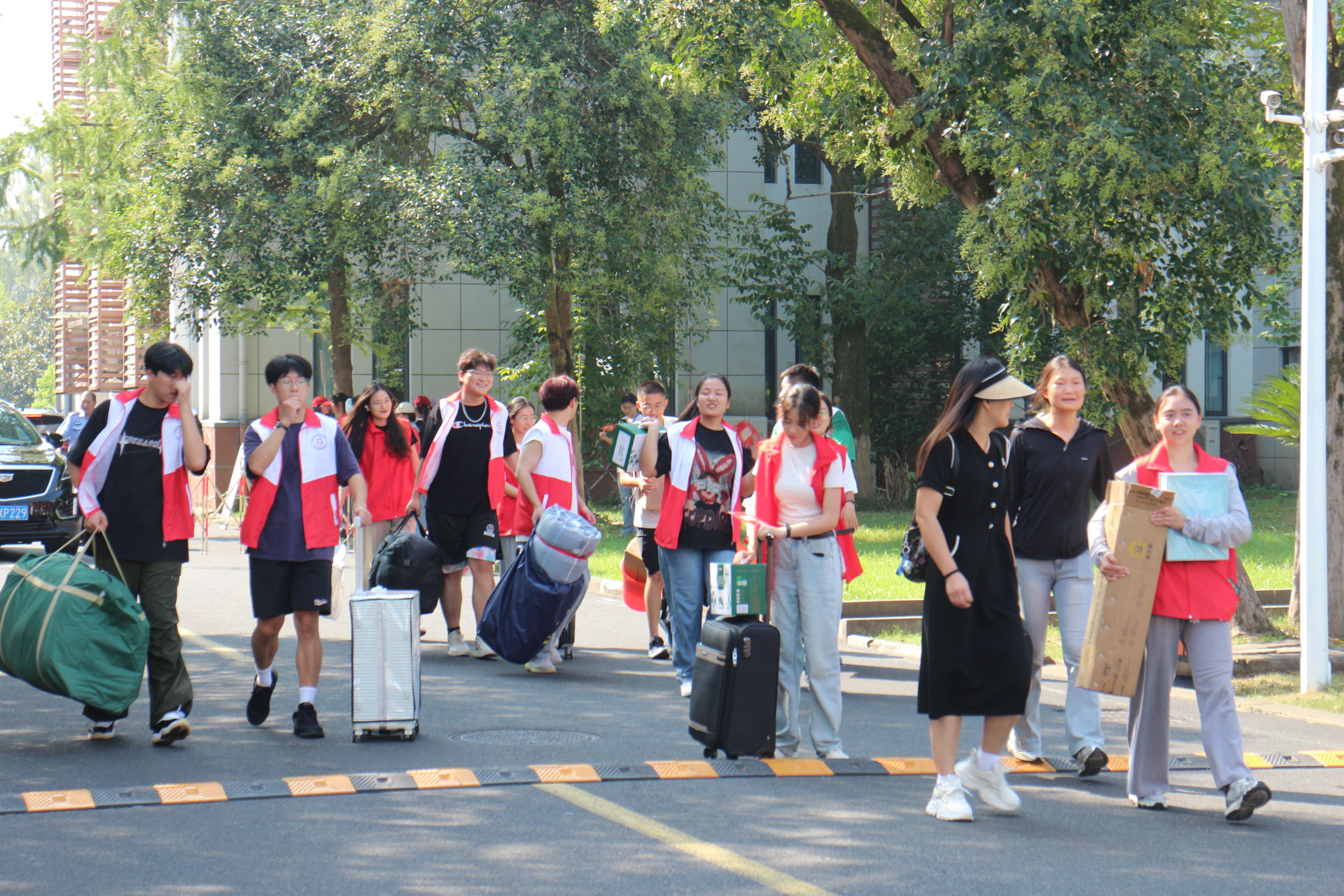 为了让新生们安心、安全到校报到,学校分别在高铁站和汽车站设立新生接站点,为新生们提供接站服务。志愿者早早地在车站广场、校园门口、报到现场等候迎接新生,并全程护送新生和家长顺利抵达学校,一个个“红马甲”“蓝马甲”和“黄马甲”格外亮眼,他们热情为新生和家长接待指引,协助新生办理报到手续、搬运行李,帮助新生熟悉校园环境,以“点对点”的方式服务好每一位新生。一系列暖心迎新举措,成为新生们的“独家记忆”。“一进校门就能看见报到指引牌了”“报到流程便捷易懂,整个过程进行得非常顺利”“学长学姐会提前说一些注意事项,引导我们完成报到”……迎新现场,来自各个学院的新生纷纷称赞道。