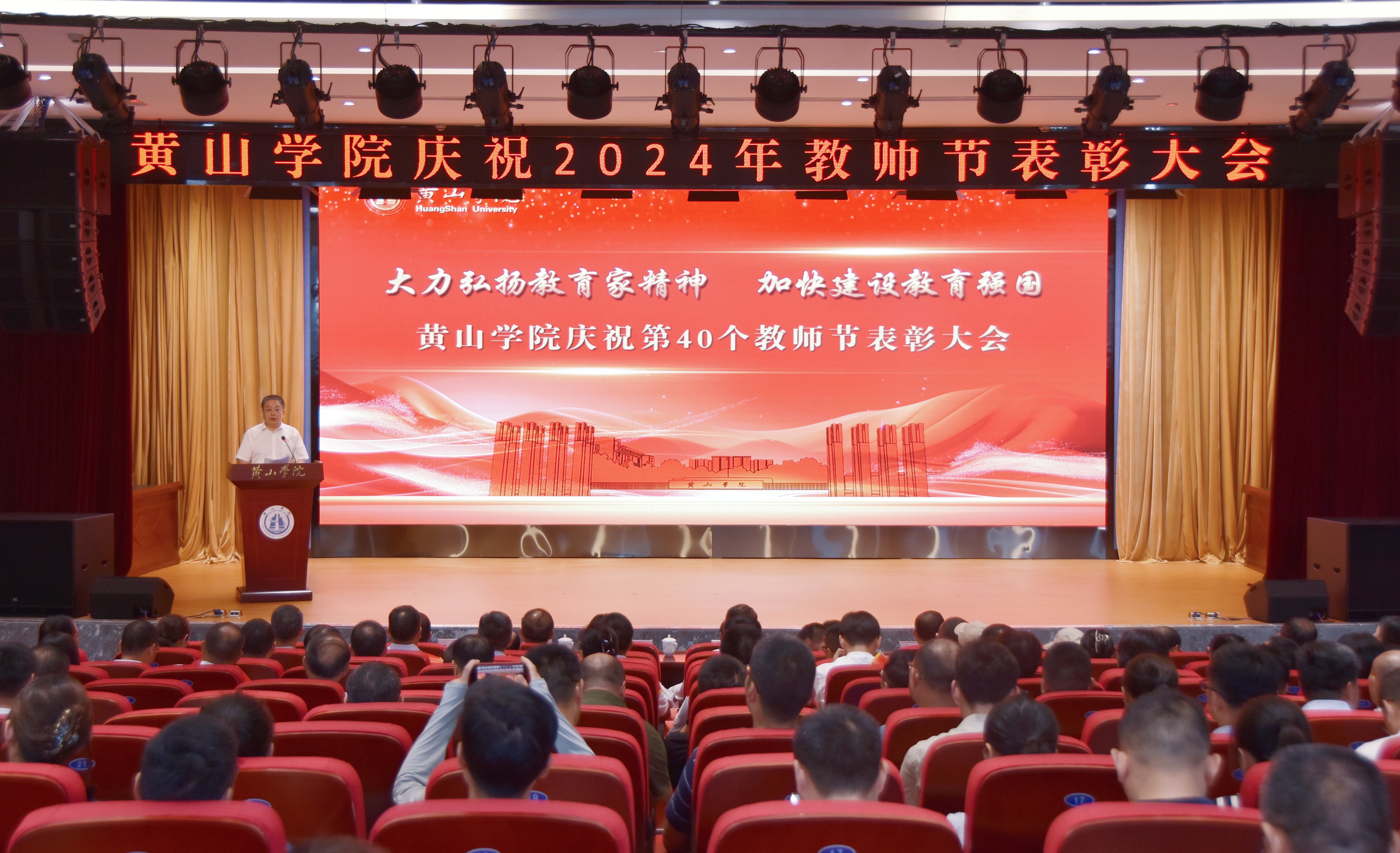 9月9日下午,我校在文博楼二楼报告厅举行黄山学院庆祝第40个教师节表彰大会。校领导李铁范、李庆宏、章文静、张小明、胡海生出席表彰大会,受表彰教师、全体处级干部和师生代表参加了表彰大会。大会由校党委副书记、院长李庆宏主持。