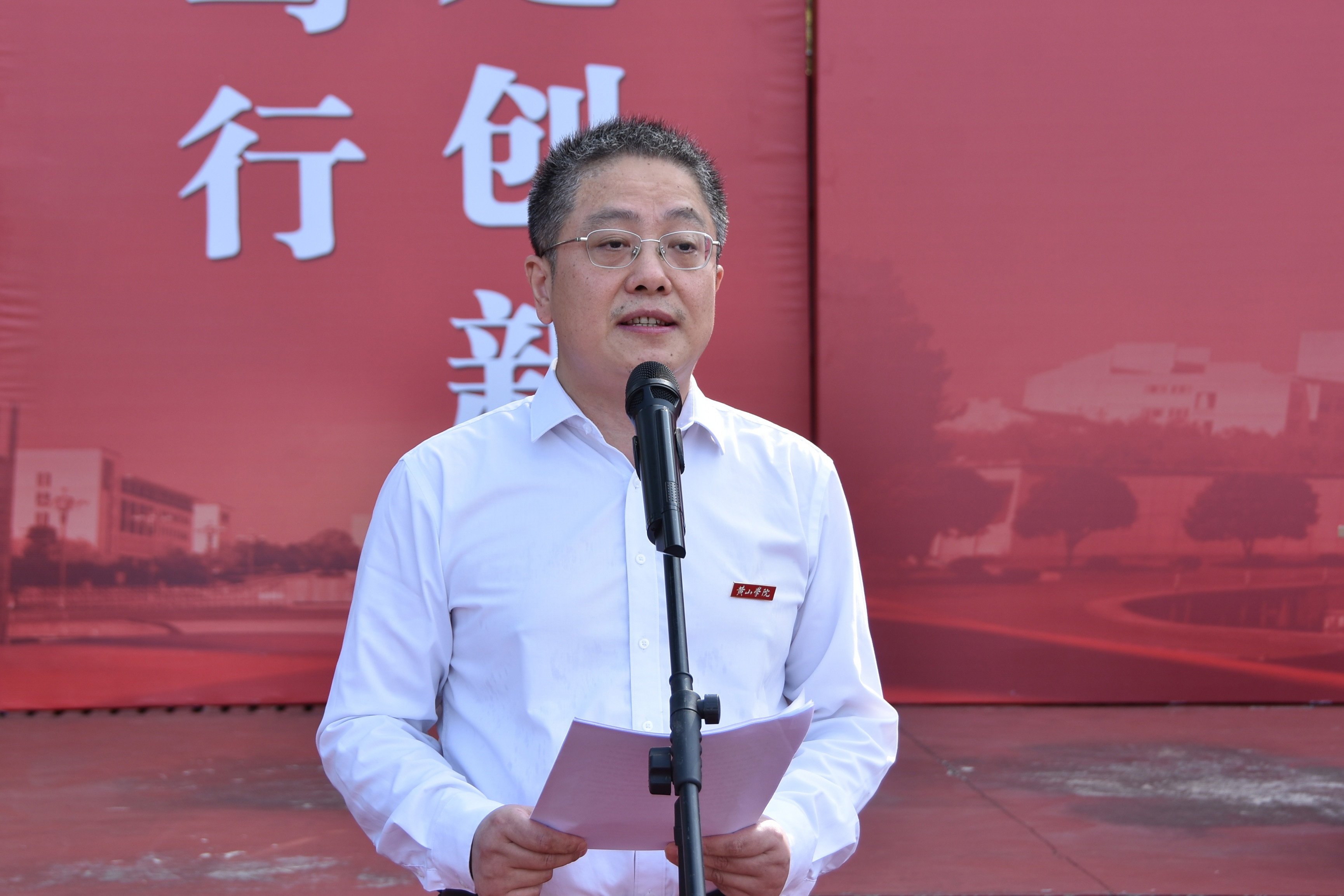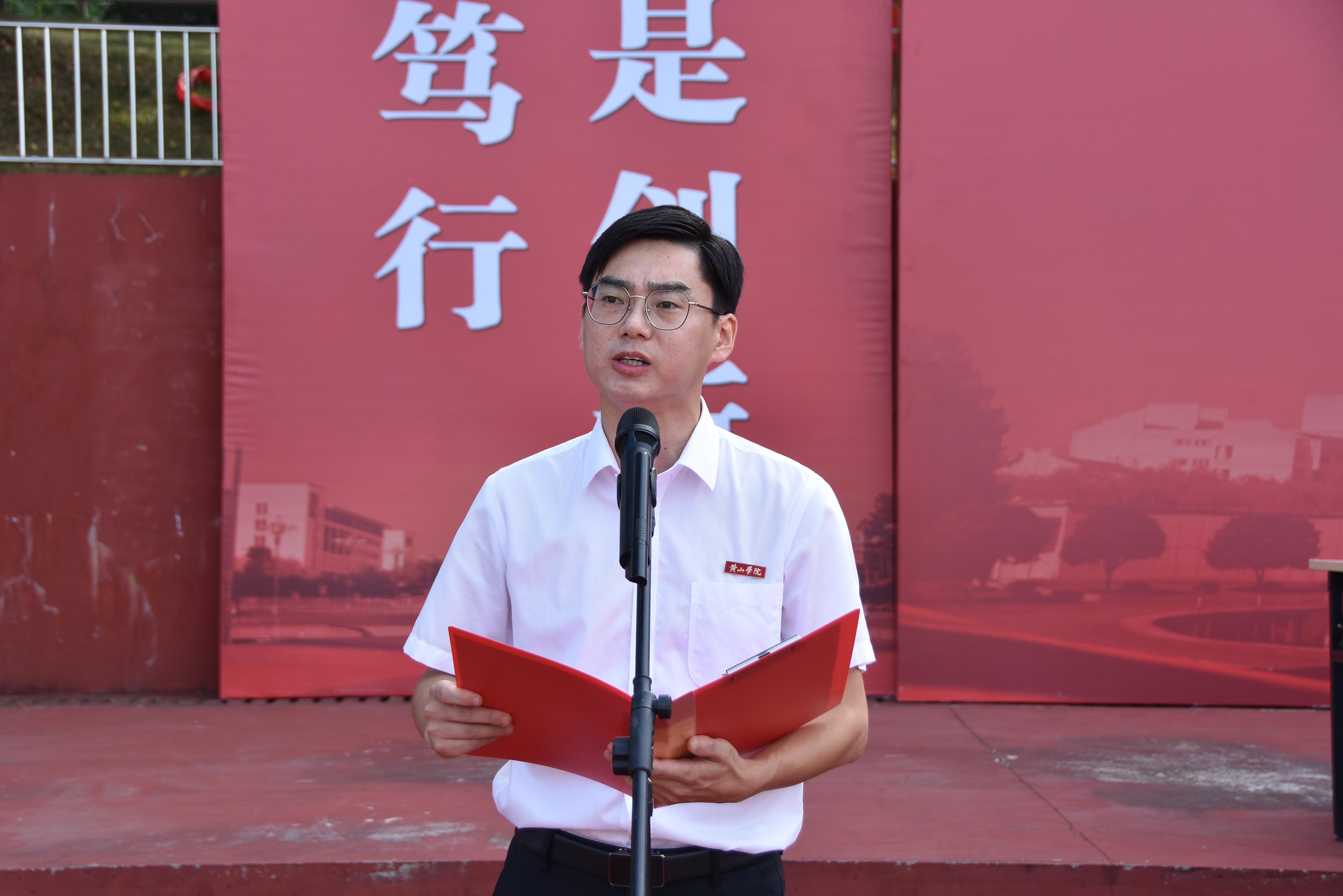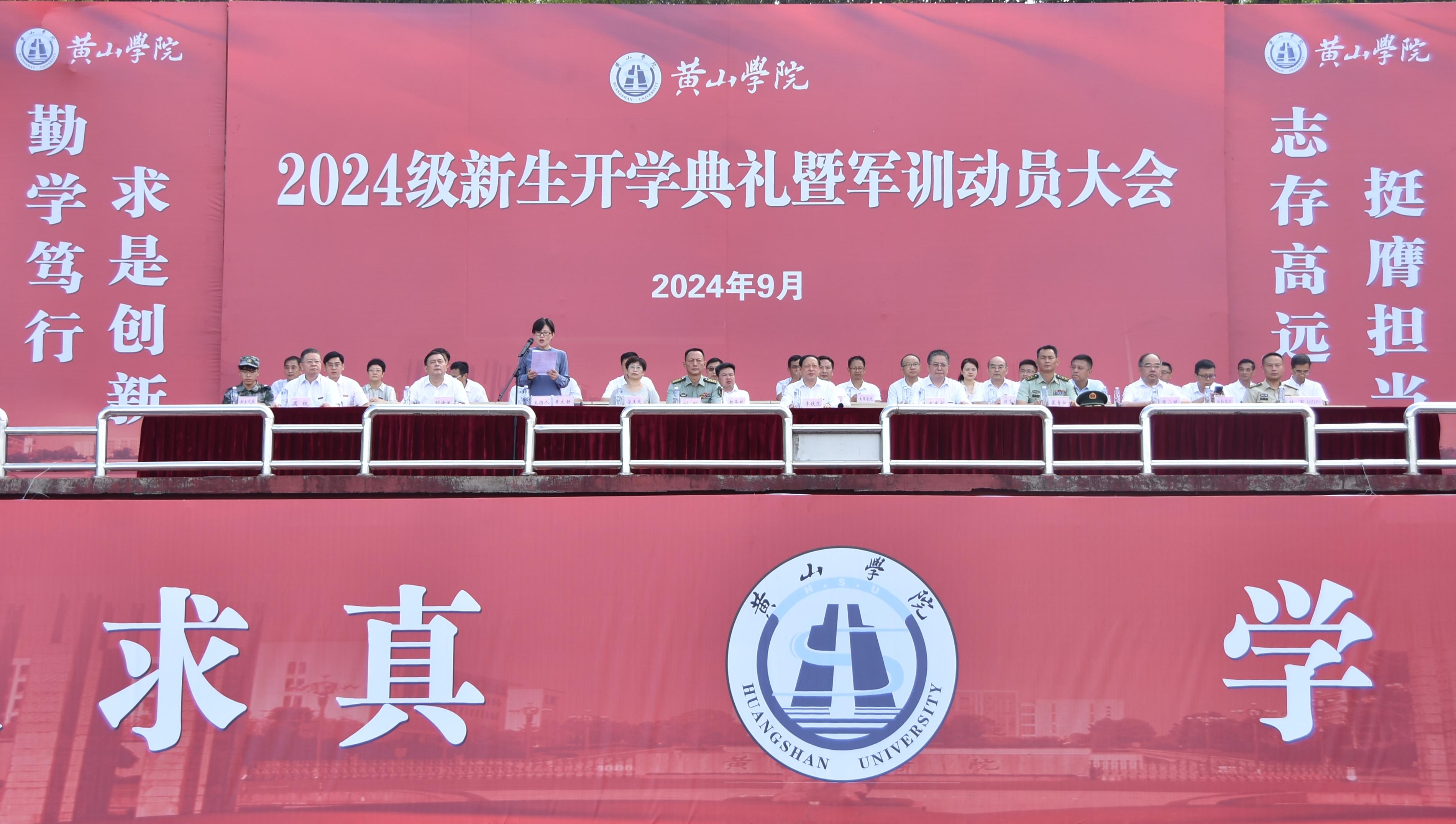 各部门、各学院负责人,武警黄山支队的官兵以及2024级全体新生参加典礼。