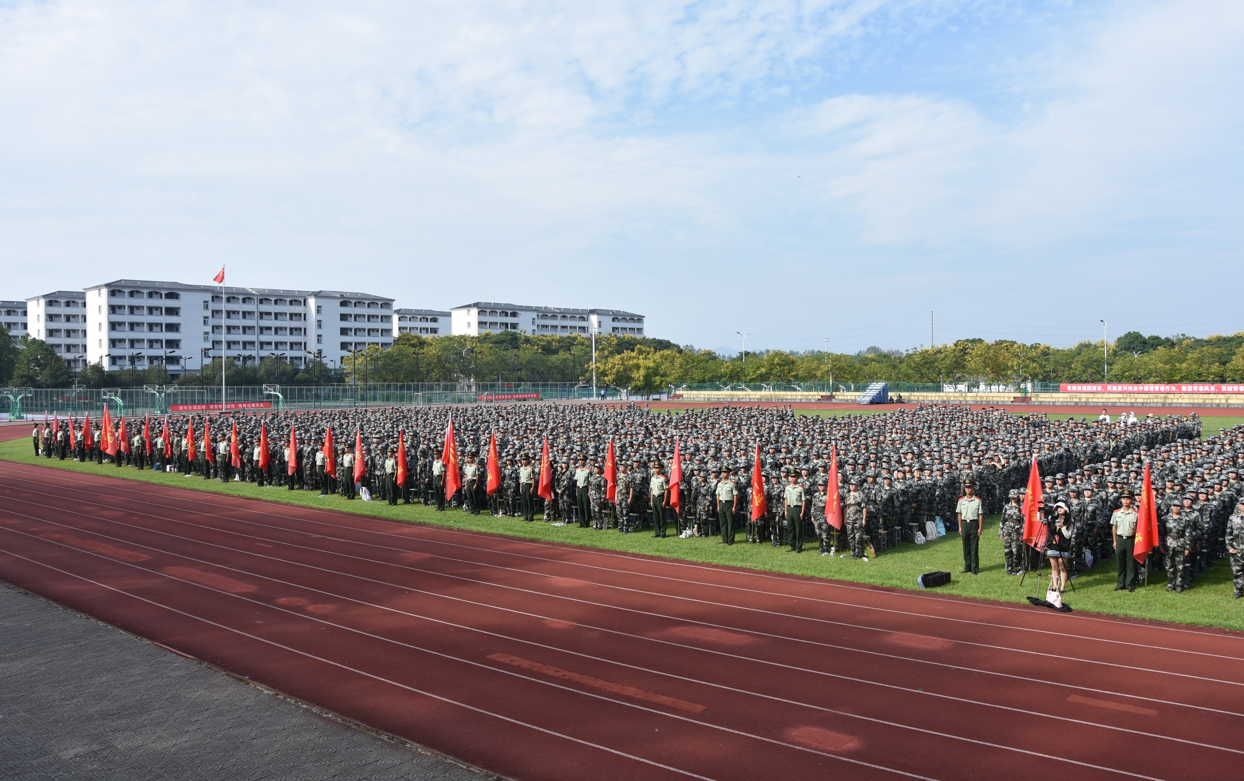 在雄壮的国歌声中,2024级新生开学典礼暨军训动员大会正式拉开序幕。