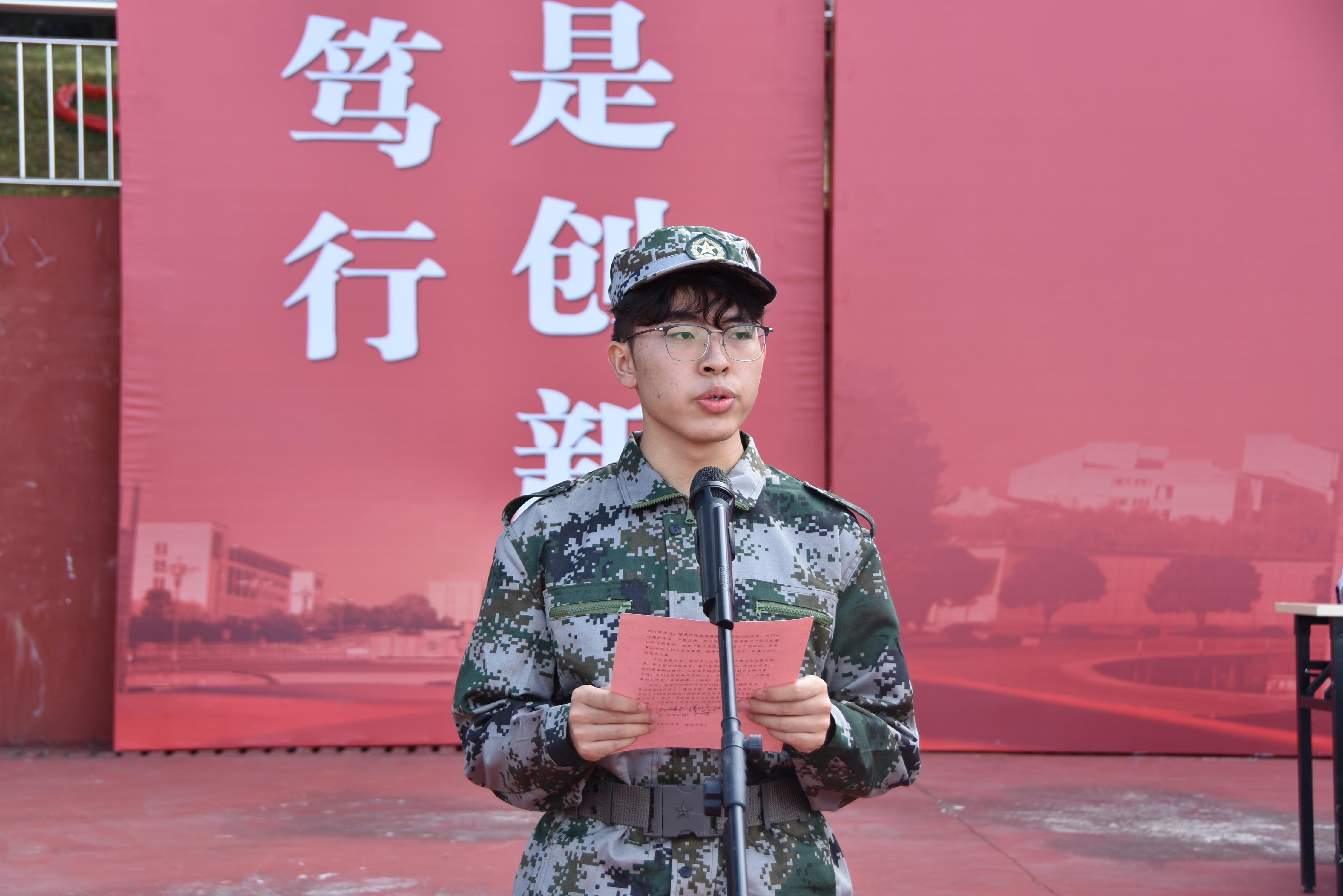 李庆宏希望新生要以一个优秀士兵的标准严格要求自己,养成朝气蓬勃的精神风貌、令行禁止的纪律意识、起居有序的生活习惯、团结协作的集体观念;要积极服从命令,认真听从指挥,坚守铁一般纪律,展现顽强毅力,为大学生活开启华丽篇章。