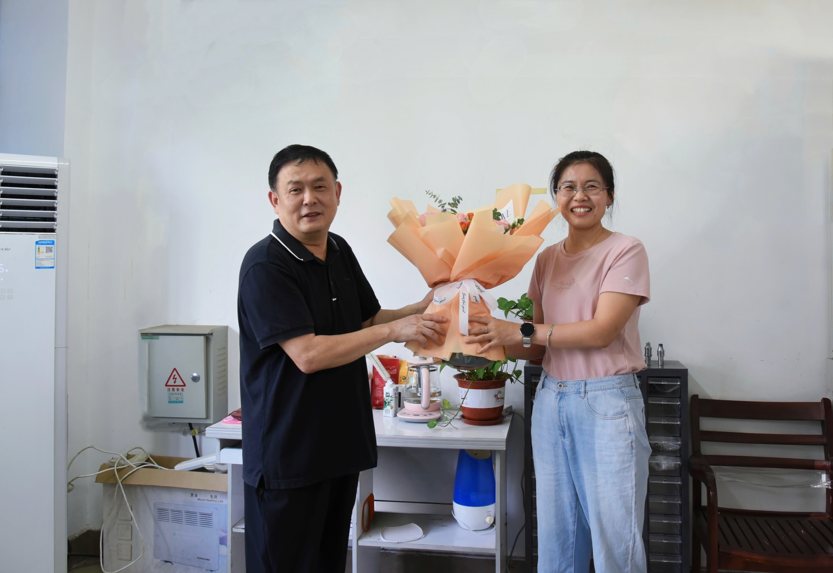走访中,校领导分别为教师代表送上鲜花与祝福,详细了解他们教学、科研、备赛以及生活情况,高度赞扬了教师代表在教学、科研以及社会服务方面取得的显著成绩,对他们长期坚守教学科研一线、潜心教书育人、为学校教育事业倾情付出表示诚挚谢意。希望他们大力弘扬教育家精神,牢记为党育人、为国育才的初心使命,不断提升教书育人本领,以新担当、新作为推进学校事业高质量发展。