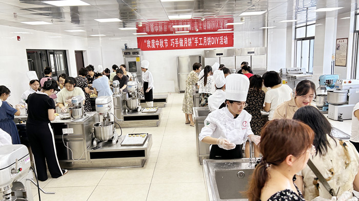 活动得到了旅游学院烘焙教研室学生团队的大力支持。在专业导师的详细讲解和现场示范指导下,大家分工合作,有的揉面团,有的包馅料,有的定型,老师们忙得不亦乐乎,现场充满了欢声笑语,洋溢着浓浓的节日气息。