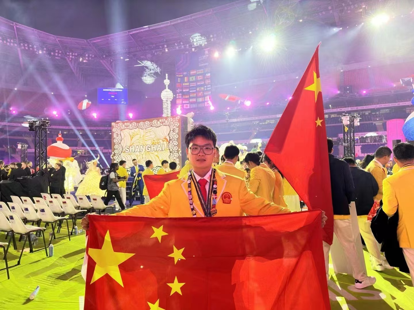 北京时间9月16日凌晨,第47届世界技能大赛法国里昂闭幕式现场传来重大喜讯,我校2名参赛选手夺得1金1铜。艺术学院2020级视觉传达设计专业学生张小飞斩获油漆与装饰项目金牌,生命与环境科学学院2020级园林专业学生闫志广夺得园艺项目铜牌,创造了我校选手代表中国参加世界技能大赛成绩新的历史,彰显了我校在培养高技能人才方面的深厚底蕴。