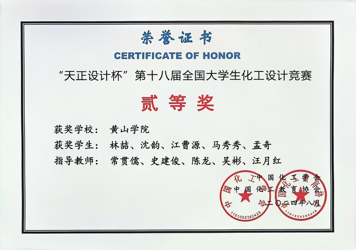 8月23日,由中国化工学会、中国化工教育协会主办,大连理工大学承办的“天正设计杯”第十八届全国大学生化工设计竞赛顺利闭幕,我校化学化工学院的三只队伍参加了比赛并获得优异成绩:十五画得醇团队(成员:江曹源、林喆、沈韵、马秀秀、孟奇)荣获全国二等奖;乘风队(成员:邢芙绮、相嘉伟、方明珠、王梦洁、郭惠秋)和醇醇欲动队(成员:张胡军、章志、黄兴豪、张君豪、周鑫)获得华中赛区三等奖。
