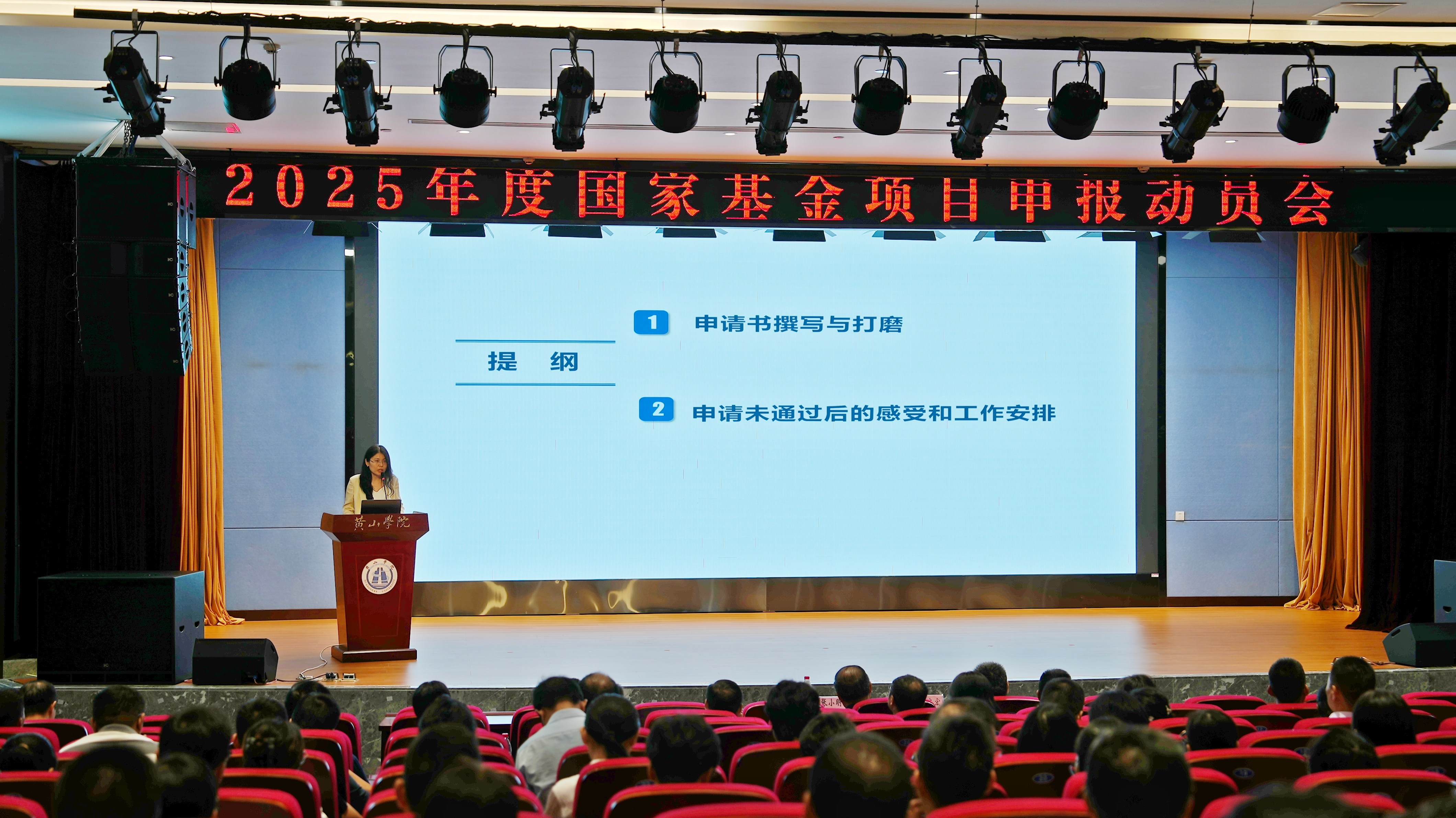 科研处负责人对《黄山学院2025年度国家基金项目申报工作方案》进行了详细解读,介绍了国家基金项目工作安排、指标分配、工作要求等。