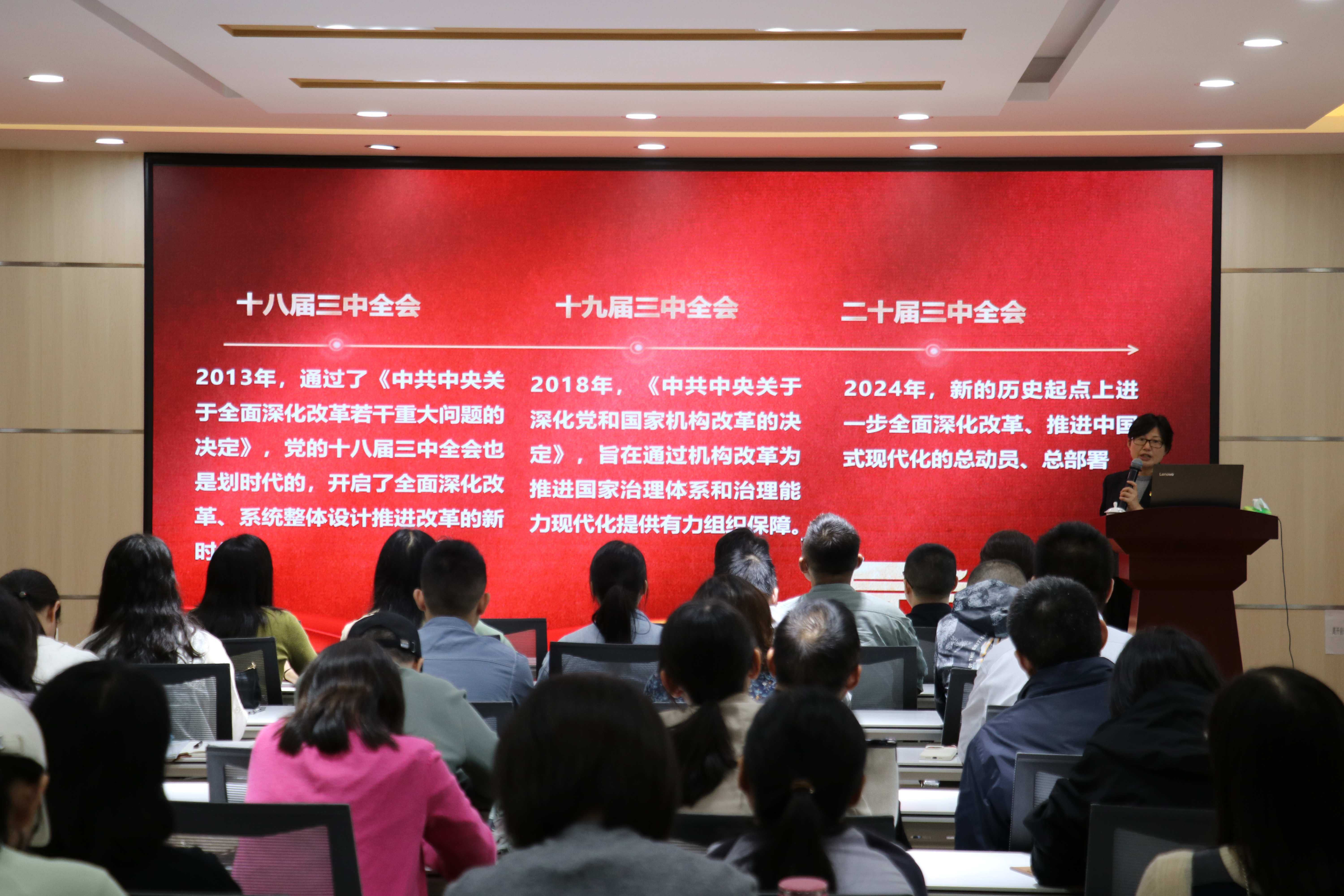 为深入学习宣传贯彻党的二十届三中全会精神,切实引导广大师生员工深入理解、全面把握党的二十届三中全会精神实质,把思想和行动统一到党中央的决策部署上来,凝心聚力推进学校高质量发展,近日,校领导带头深入各二级单位宣讲党的二十届三中全会精神,推动全会精神走深走实。