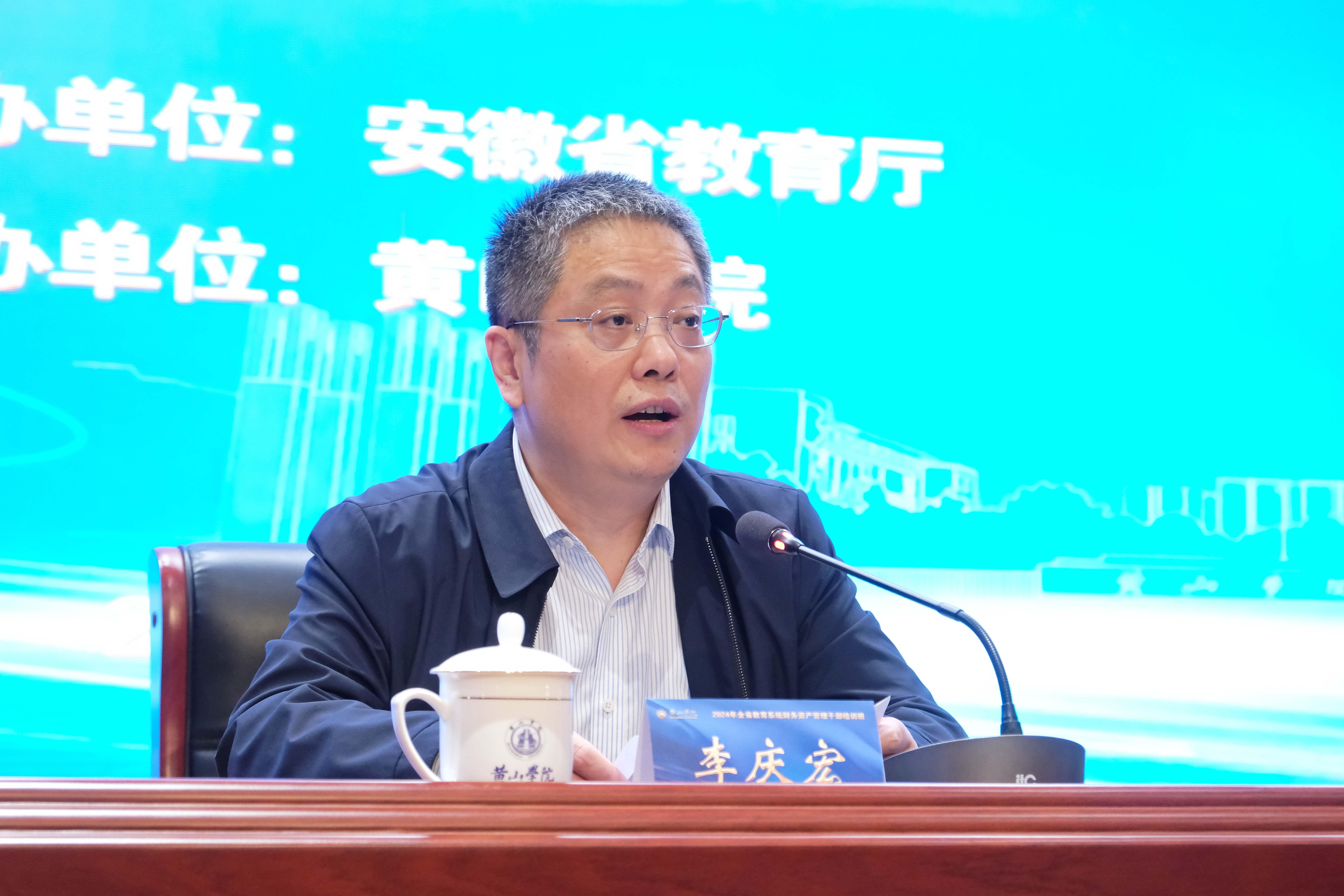 李庆宏在致辞中代表学校向各位领导和嘉宾的到来表示热烈欢迎和衷心感谢,他介绍了我校基本情况和办学特色,并重点介绍了近几年学校的财务资产管理工作成效。他指出,本次培训班为我校提供了宝贵的学习交流机会,也为全省教育系统共同探索财务资产管理的高质量发展提供了交流平台,必将推动我校教育财务资产工作再上新台阶,助力学校教育事业高质量发展。学校将竭尽全力协助组织好本次会议,确保会议顺利圆满。