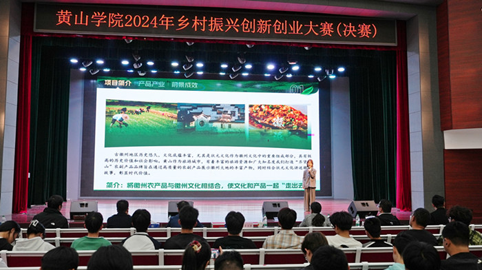 10月23日下午,黄山学院乡村振兴创新创业大赛决赛在我校大学生活动中心礼堂举办。黄山市委社会工作部、共青团黄山市委、市祁门县金字牌镇、市徽州区西溪南镇等相关领域的专家担任评委,千余名师生代表参与大赛。