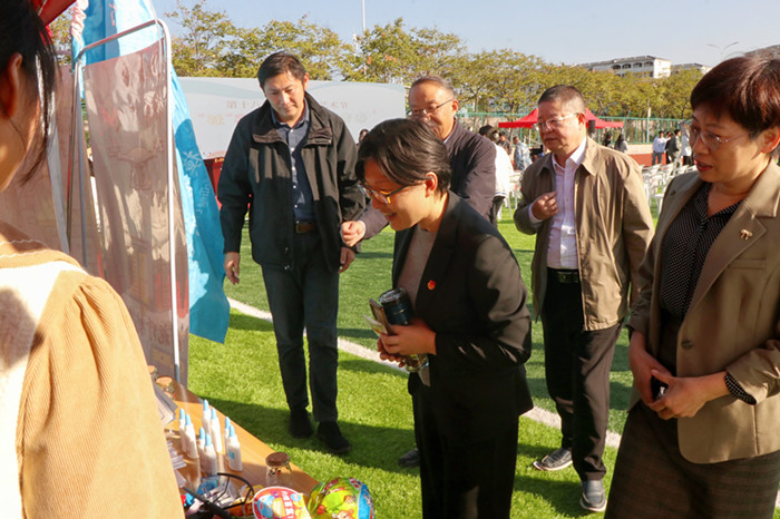 章文静深入招新现场指导工作,与各个社团成员亲切交流,详细了解各社团的特色和建设情况,对社团成员们的热情和创意表示赞赏,鼓励社团成员在丰富多彩的社团活动中绽放自我, 获得成长。
