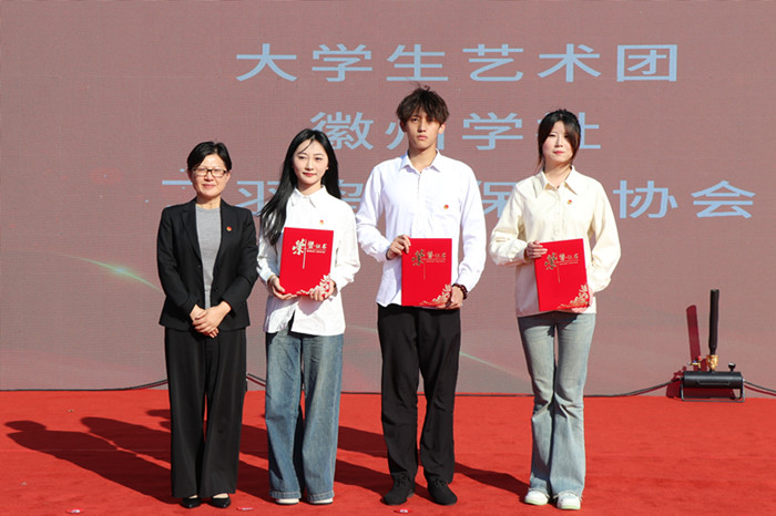 开幕式上,对优秀社团指导老师、优秀社团、安徽省高校“活力社团”进行了表彰。随后,优秀社团指导教师代表—飞羽鸟类保护协会于超老师和荣获安徽省活力社团、优秀社团代表的大学生艺术团万科含分别作了发言。
