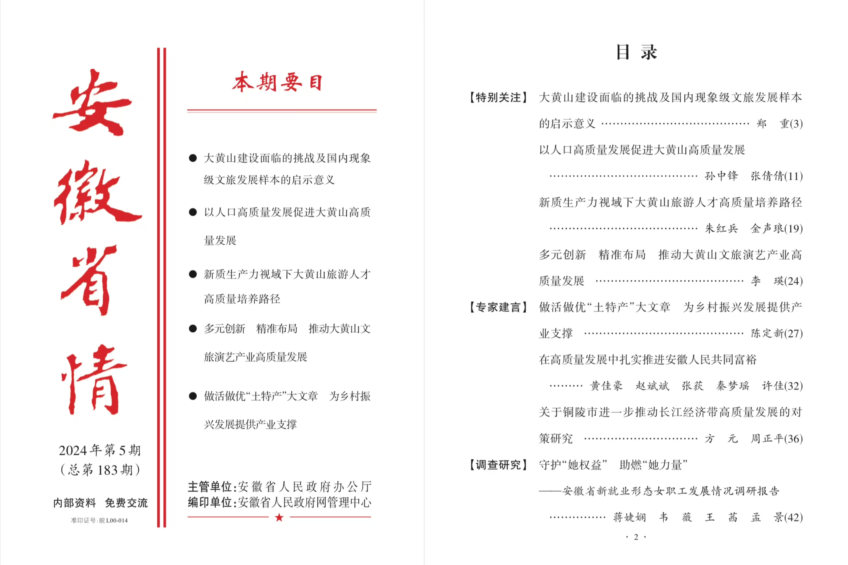 据悉,《安徽省情》内刊主要呈送省委、省人大、省政府、省政协主要领导以及省委常委、省政府副省长等,供决策参考。