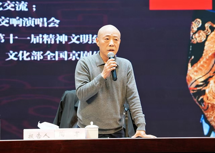 讲座中,陶军以其独特的艺术视角和深入浅出的讲解方式,从京剧的形成和发展历史讲起,带领大家走进了京剧艺术的殿堂。他详细介绍了京剧的行当、表现手法、唱腔、念白、音乐和精气神等七大方面,通过生动的例子和自身的学习经历,表达了对京剧艺术的深厚理解和热爱。