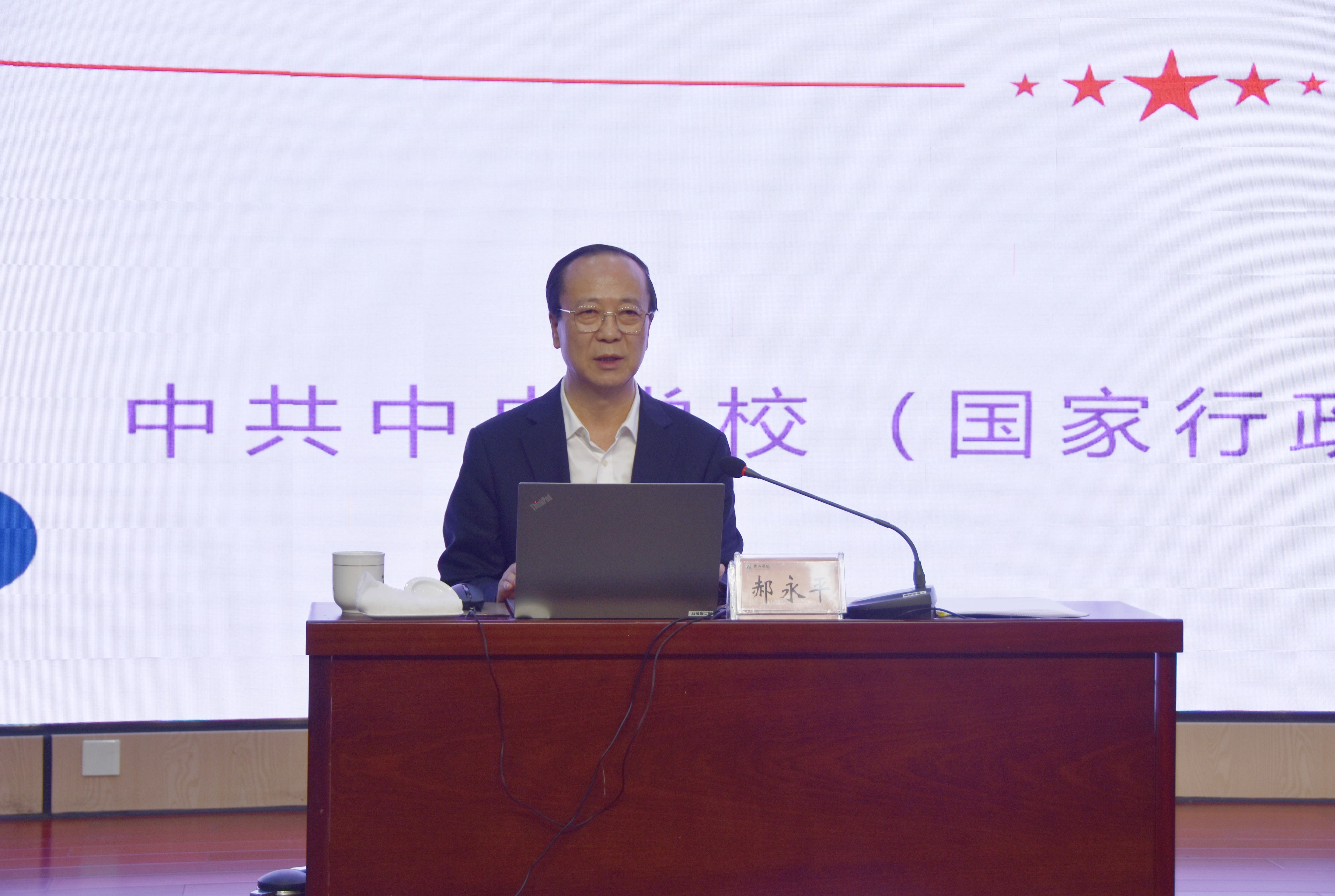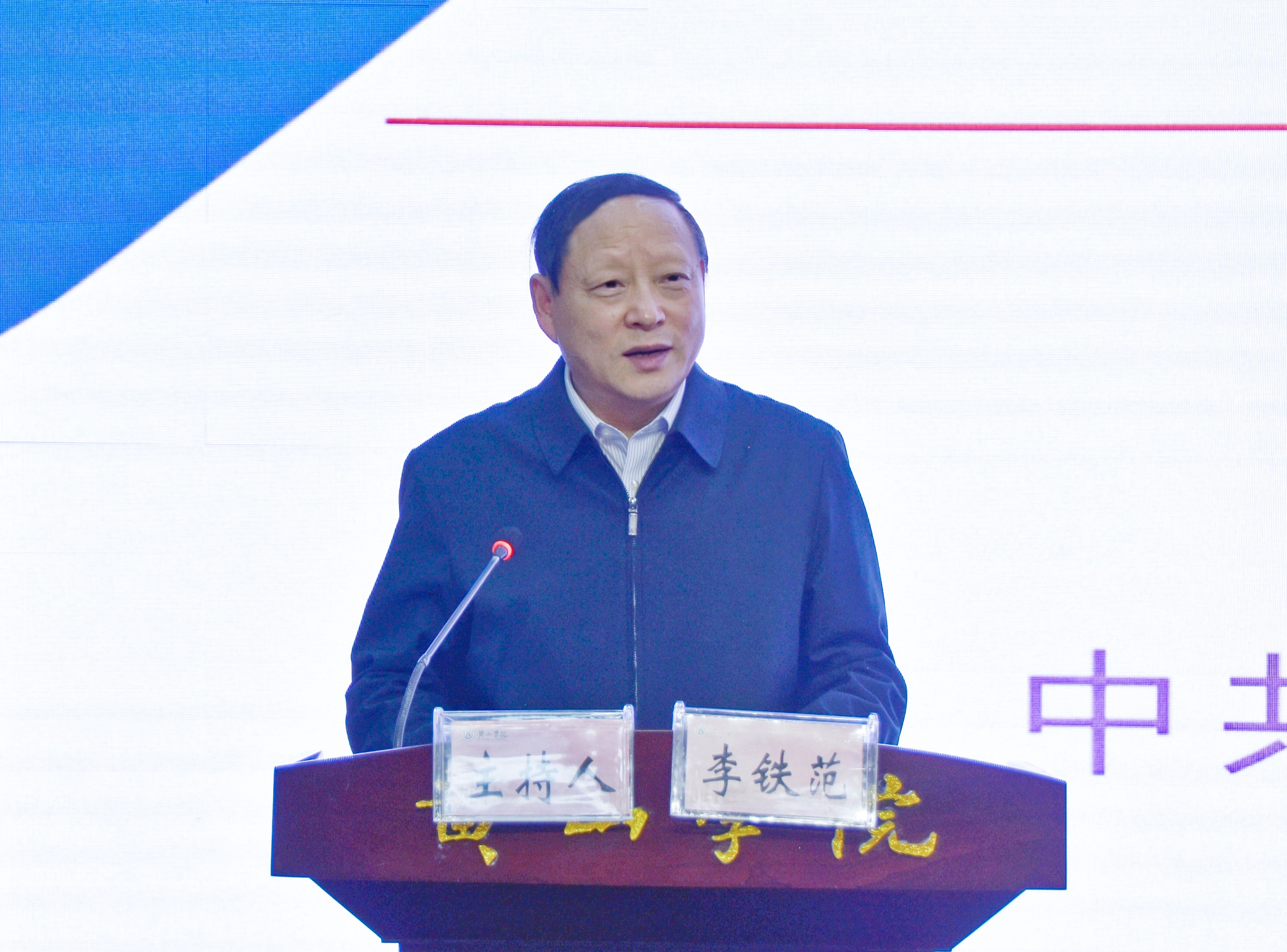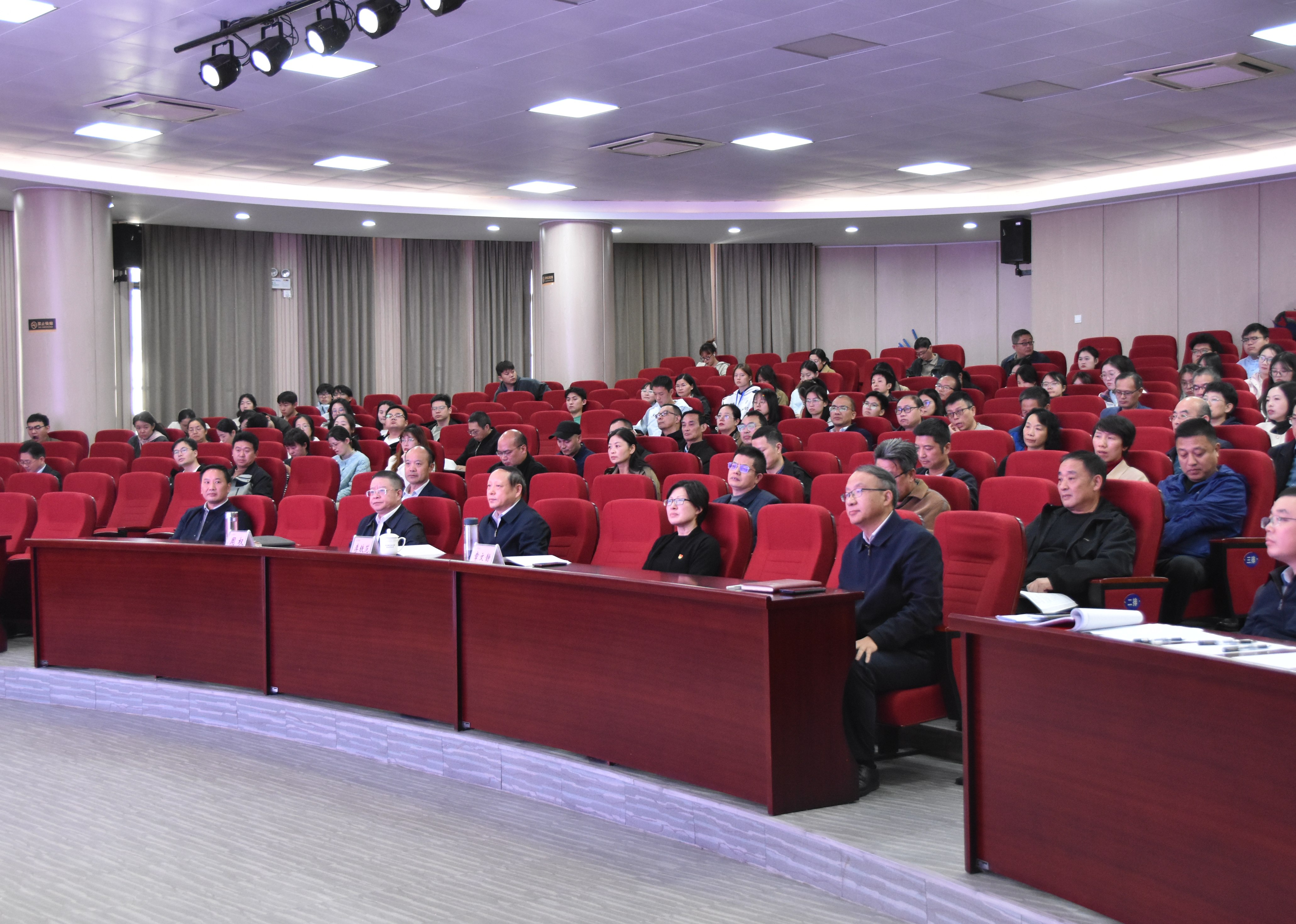 11月7日下午,校党委理论学习中心组(扩大)在文端楼二楼报告厅举行专题学习报告会,中央党校(国家行政学院)研究室主任、中国辩证唯物主义研究会副会长、中央党校(国家行政学院)原秘书长郝永平教授受邀作“新时代伟大斗争”专题辅导报告,校党委理论学习中心组成员、全校处级领导干部、思政课专兼职教师、专职辅导员、青年研习社全体成员以及学生代表300余人参加报告会。党委书记李铁范主持报告会并讲话。