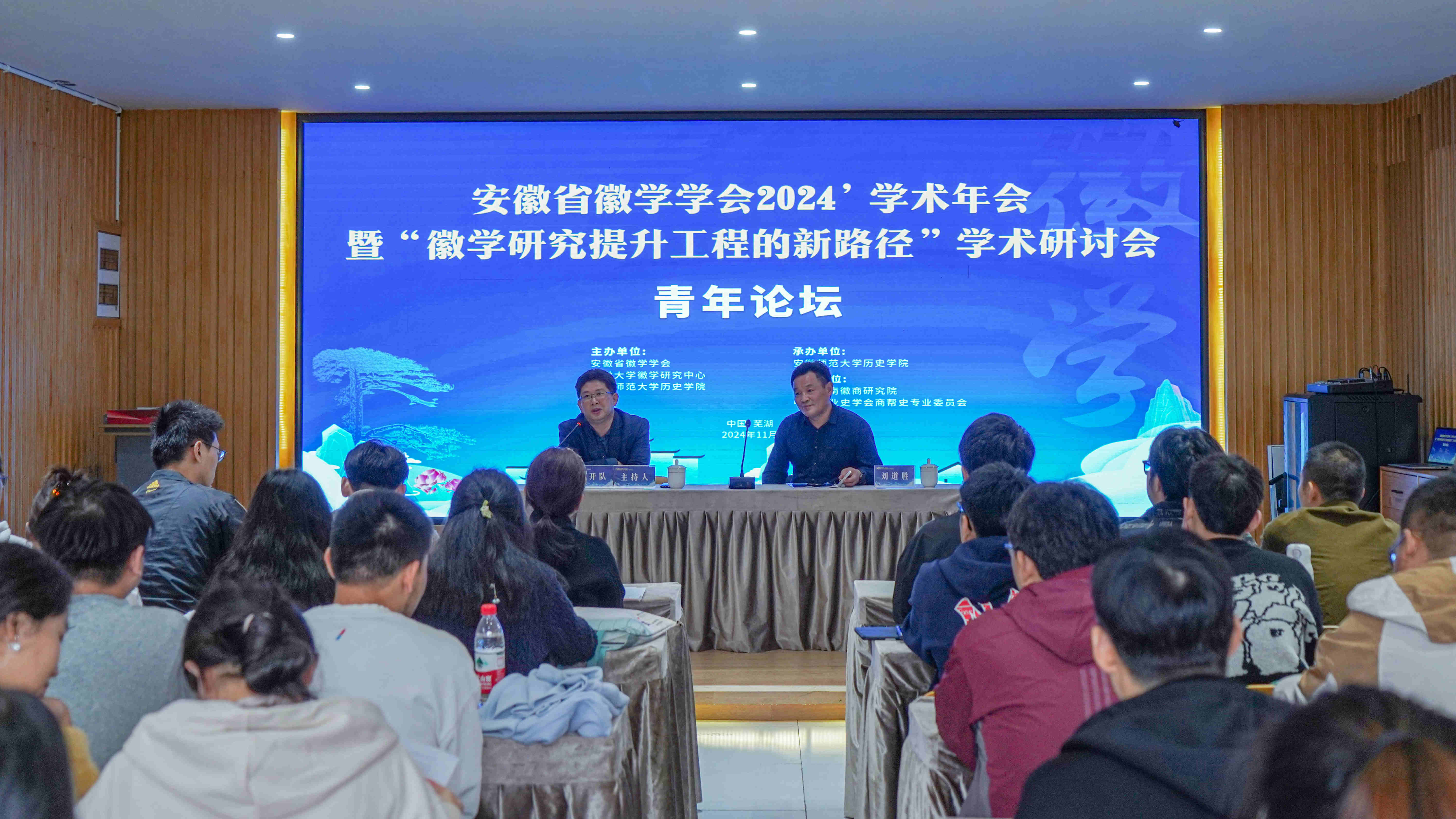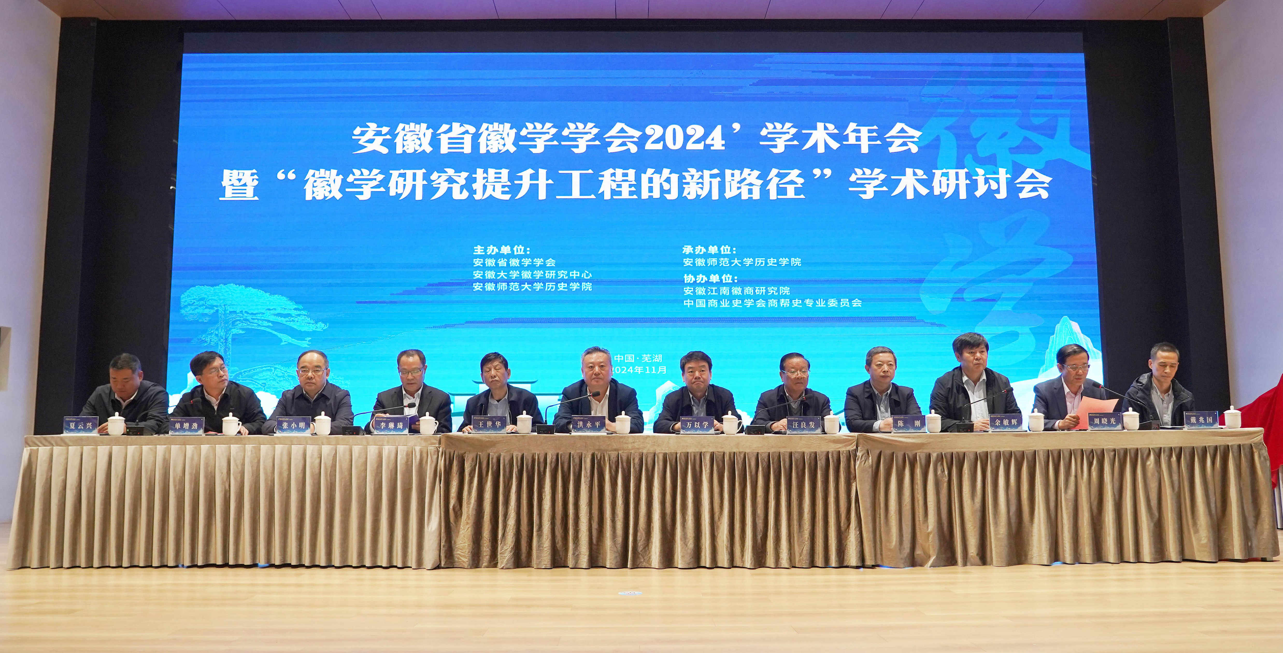 11月16日,安徽省徽学学会2024学术年会暨“徽学研究提升工程的新路径”学术研讨会在芜湖市鸠兹湾举行。会议由安徽省徽学学会、安徽大学徽学研究中心、安徽师范大学历史学院联合主办,安徽江南徽商研究院、中国商业史学会商帮史专业委员会协办。省政协文化文史和学习委员会副主任、省社科联原党组书记、常务副主席、省徽学学会会长洪永平,校党委委员、副院长张小明及省徽学学会顾问出席会议,我校17位师生参加会议。