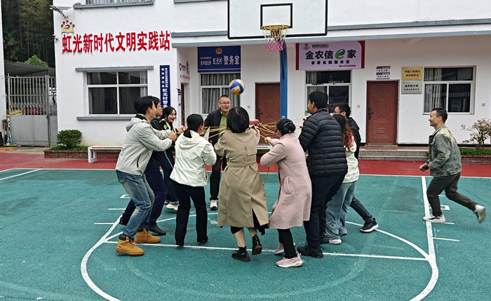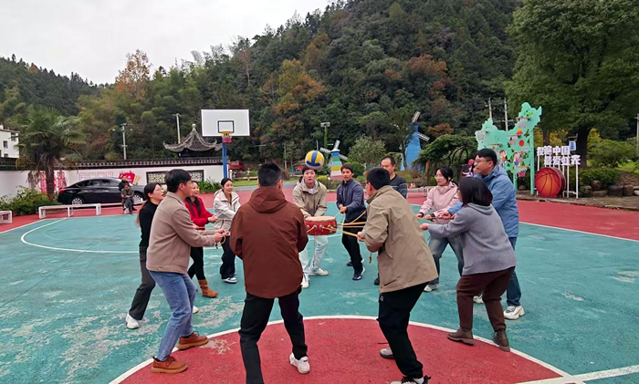 参观结束后,还进行了素质拓展训练活动。从破冰热身开始,通过桃花朵朵开和击鼓颠球等有趣的团队游戏和挑战,振奋了团队精神,建立了彼此信任,提升了团队协作能力,现场欢声笑语,气氛热烈。
