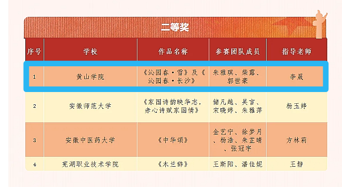 11月20日,在安徽省高校网络思想政治工作中心主办的“诗词贺华诞”安徽省高校古典诗词朗诵比赛中,我校参赛队伍凭借出色的表现荣获二等奖。