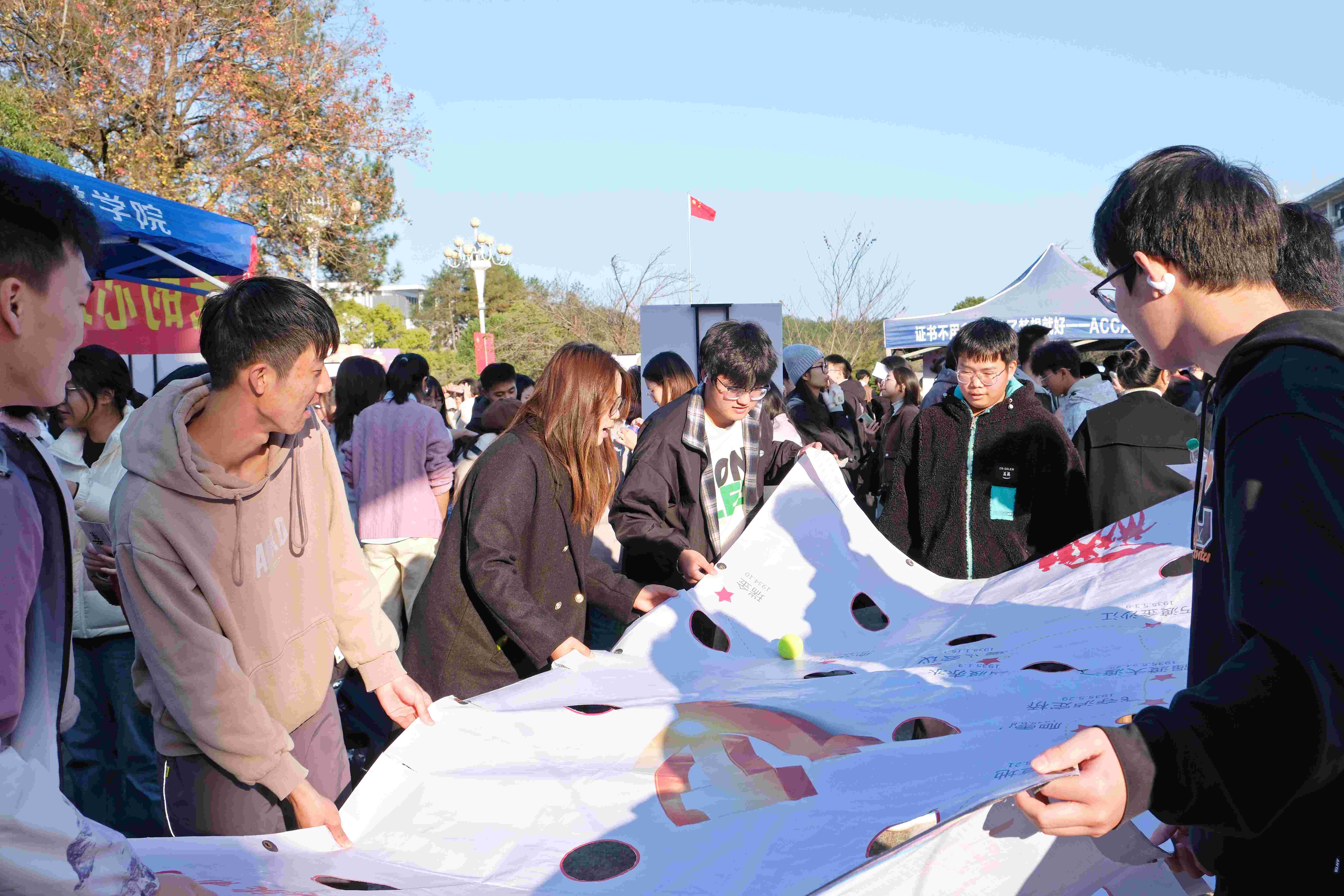 在青春寝室嘉年华、“寝”春欢乐周和心悦家园创造大赛活动现场,来自同一寝室的同学们团结一致,齐心协力,在游戏中增进了友谊,解开了日常生活中的琐碎心结,展现了青年学子的活力与风采。