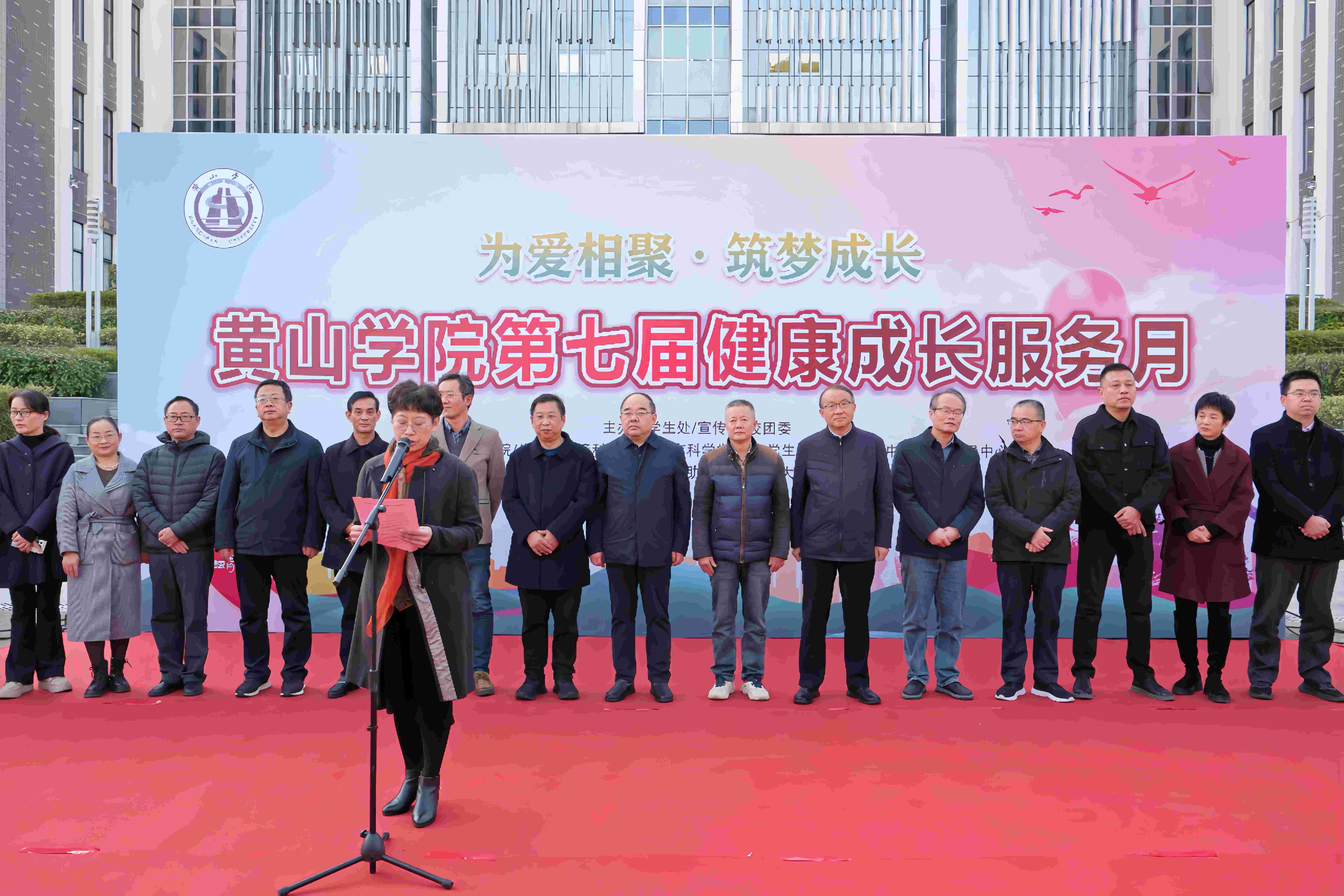 为进一步加强我校心理健康教育工作,培养学生良好心理素质,11月27日下午,我校第七届健康成长服务月系列活动在逸夫图书馆广场拉开帷幕。校党委委员、副院长张小明出席开幕式,黄山市第二人民医院领导、专家应到场临指导。学生处、宣传部、安全管理处、后勤服务集团、团委、旅游学院负责人以及各二级学院分管学生工作领导,学校专兼职心理咨询师、各学院心理联络员、教师代表、学生代表参加开幕式,开幕式由学生处负责人主持。