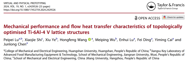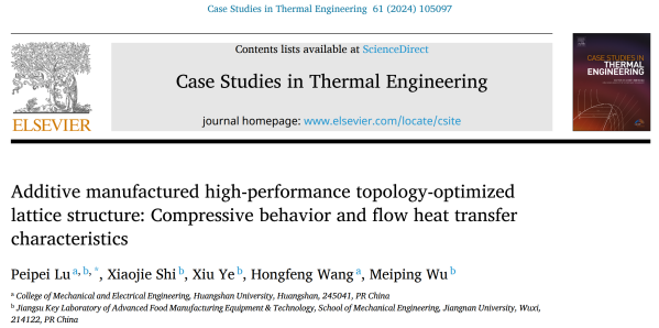 我校陆佩佩博士、汪洪峰教授与江南大学武美萍教授合作,在工程技术领域权威期刊《Virtual and Physical Prototyping》(中科院1区,IF=10.2)和《Case Studies in Thermal Engineering》(中科院2区,Top期刊,IF=6.4)分别发表题为“Mechanical performance and flow heat transfer characteristics of topologically optimised Ti-6Al-4 V lattice structures”和“Additive manufactured high-performance topology-optimized lattice structure: Compressive behavior and flow heat transfer characteristics”的科研论文,论文第一署名单位为黄山学院,陆佩佩博士为论文第一作者。