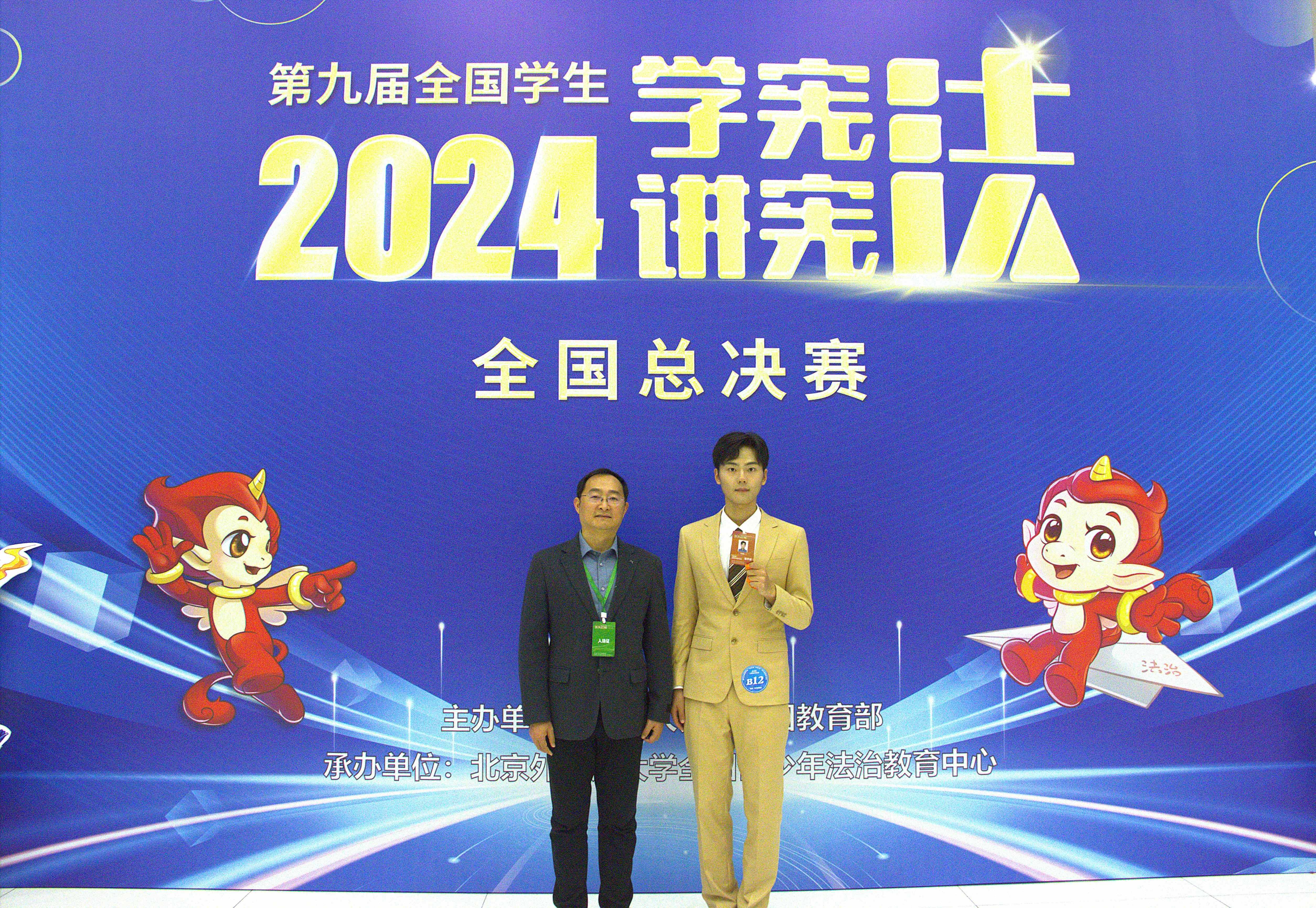 近日,由教育部主办、北京外国语大学全国青少年法治教育中心承办的第九届全国学生“学宪法 讲宪法”活动全国总决赛顺利举办,由我校教师廖荣军指导的文化与传播学院22级播音与主持艺术专业李明阳荣获演讲比赛高校组三等奖。