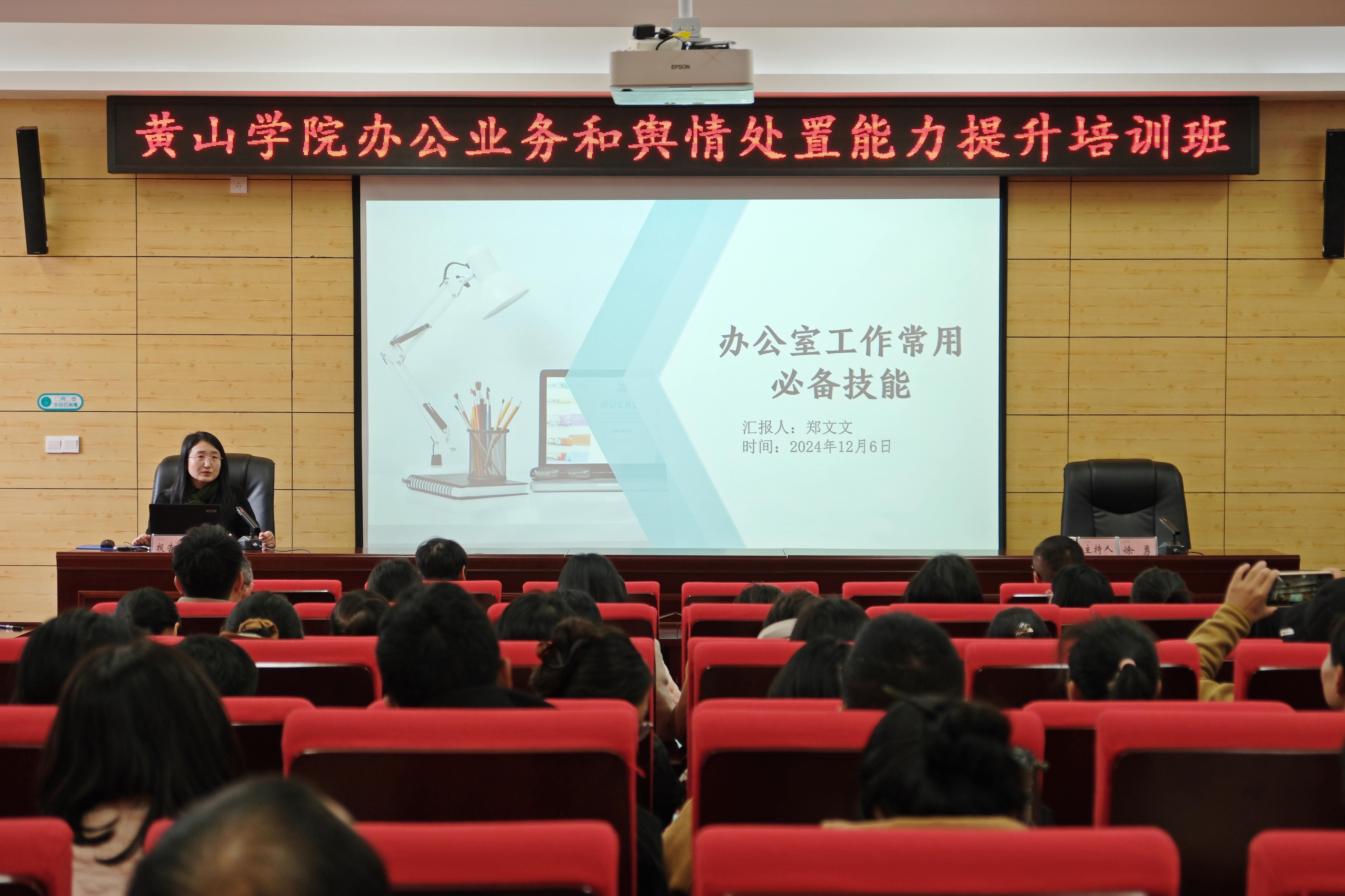 为深入推进巡视整改,全力打造服务优、效能高、形象佳的管理服务队伍,切实提升管理服务质效和水平,积极助力学校高质量发展,12月6日,我校在文昌楼南楼211会议室举行办公业务和舆情处置能力提升培训班。各学院、部门秘书,各学院教学秘书、团委书记、组织员,各单位网评员参加本次培训,培训由办公室主任汪恭艳主持。