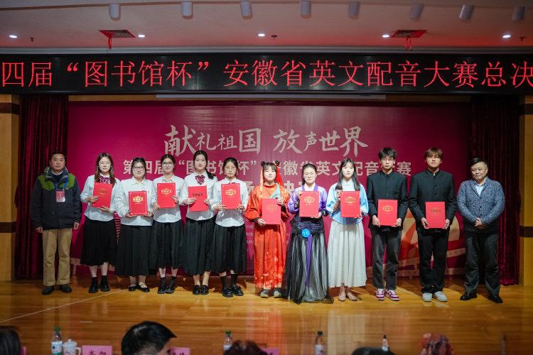 12月22日,第四届“图书馆杯”安徽省英文配音大赛在安徽合肥圆满落幕。我校晋蕾、郁永俊、陶富强三名同学组成的“红色行者”团队在决赛中以优异的表现荣获一等奖,我校图书馆荣获“优秀组织单位奖”。