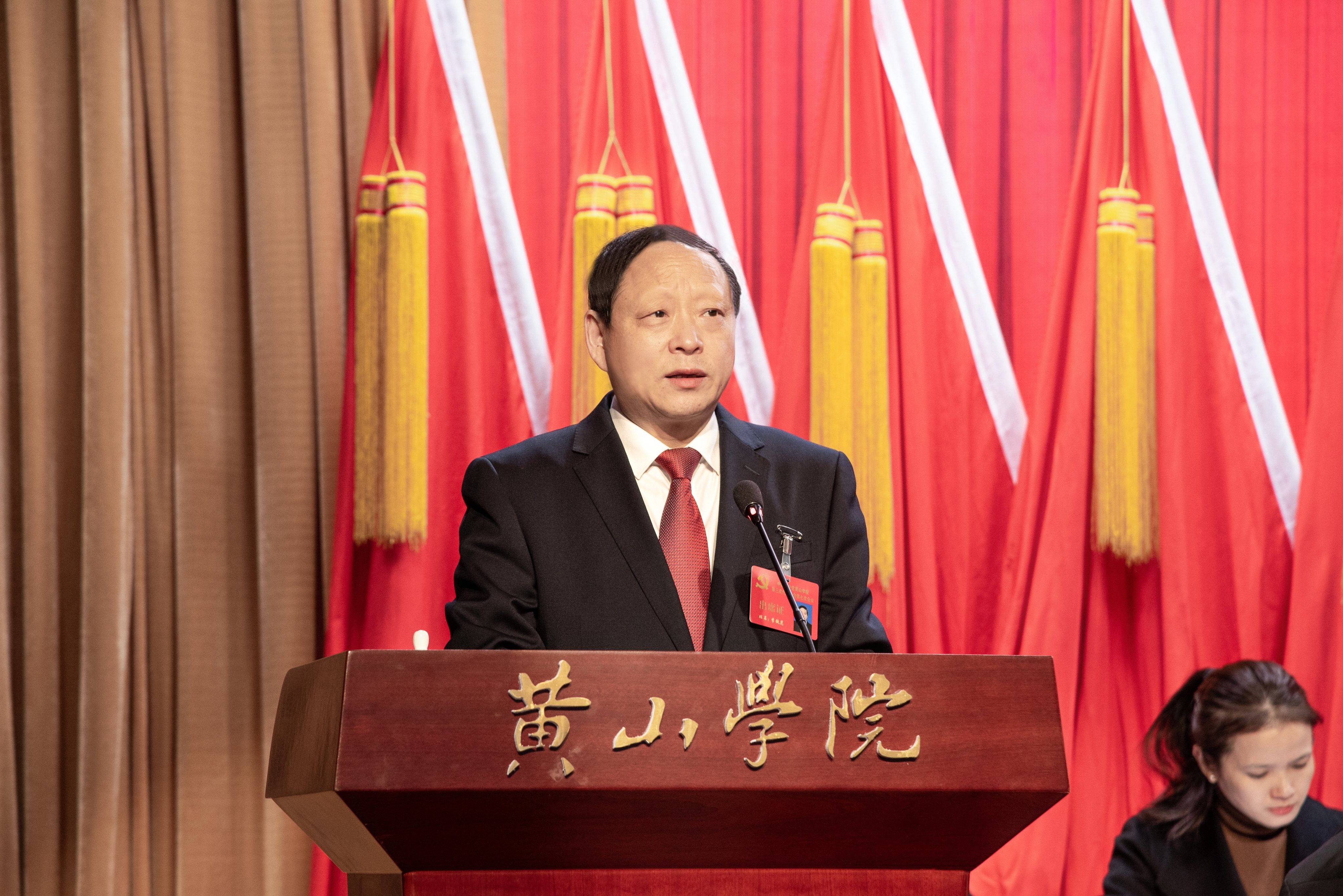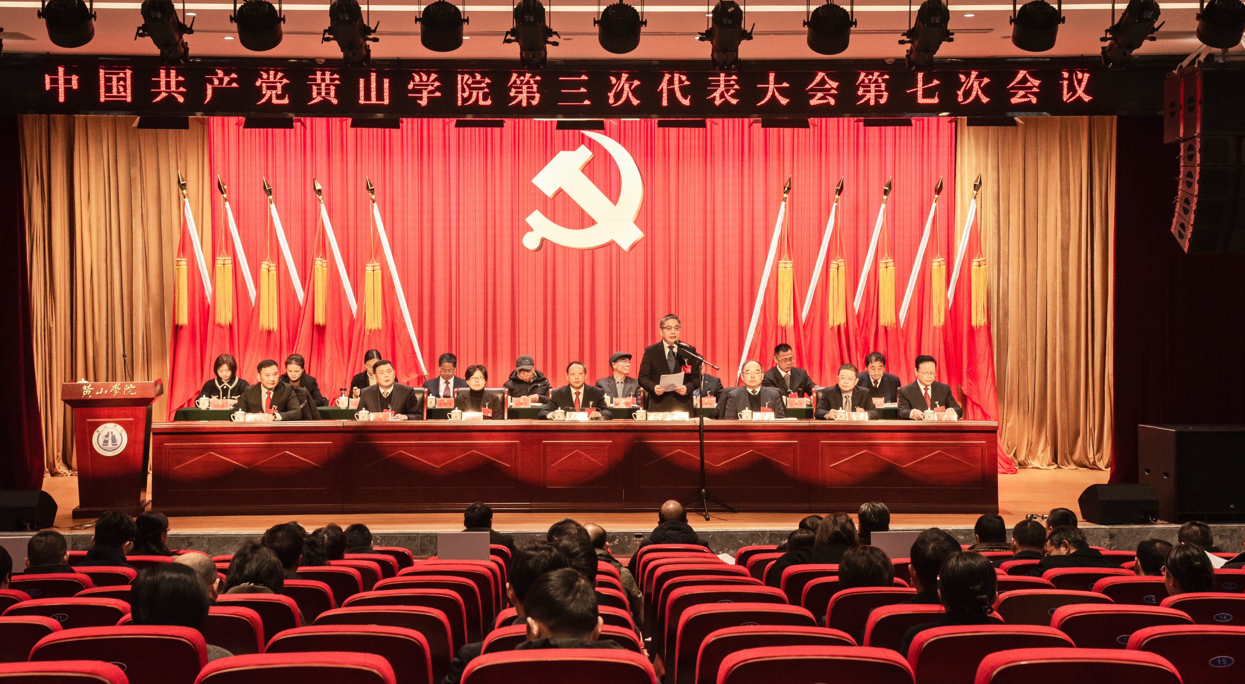 12月29日上午,中国共产党黄山学院第三次代表大会第七次会议在文博楼二楼报告厅开幕。校党委书记李铁范,党委副书记、院长李庆宏,党委副书记章文静,党委委员、副院长张小明,党委委员、纪委书记、监察专员胡海生,主席团成员出席大会并在主席台就座。校第三届党代会代表、特邀人员及列席人员参加会议。会议由李庆宏主持。