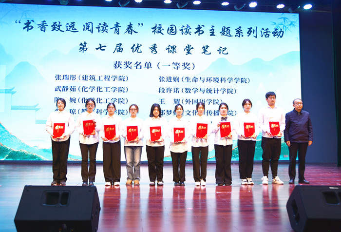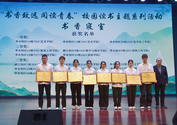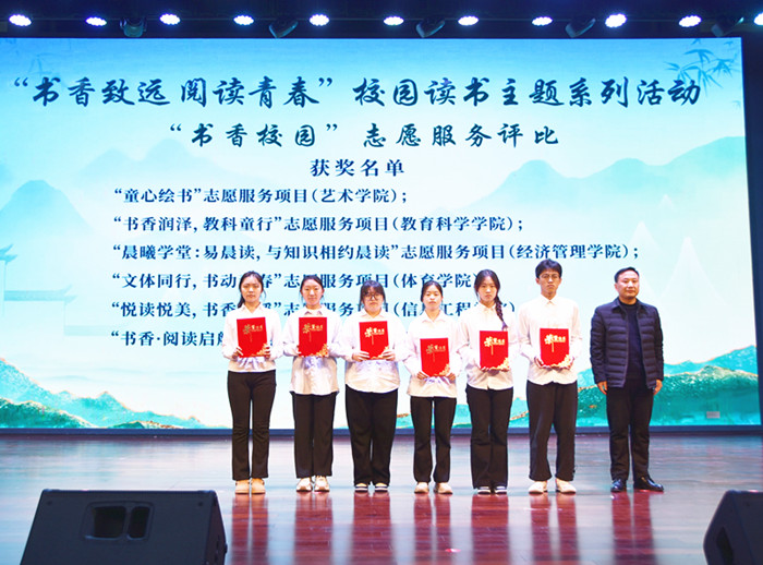 会上表彰了书香寝室、书香班级、书香团支部、“青春共筑书香梦”短视频征集大赛、书香校园主题征文比赛、书香校园志愿服务评比活动、第七届优秀课堂笔记获得者,与会部门领导为获奖者颁奖。