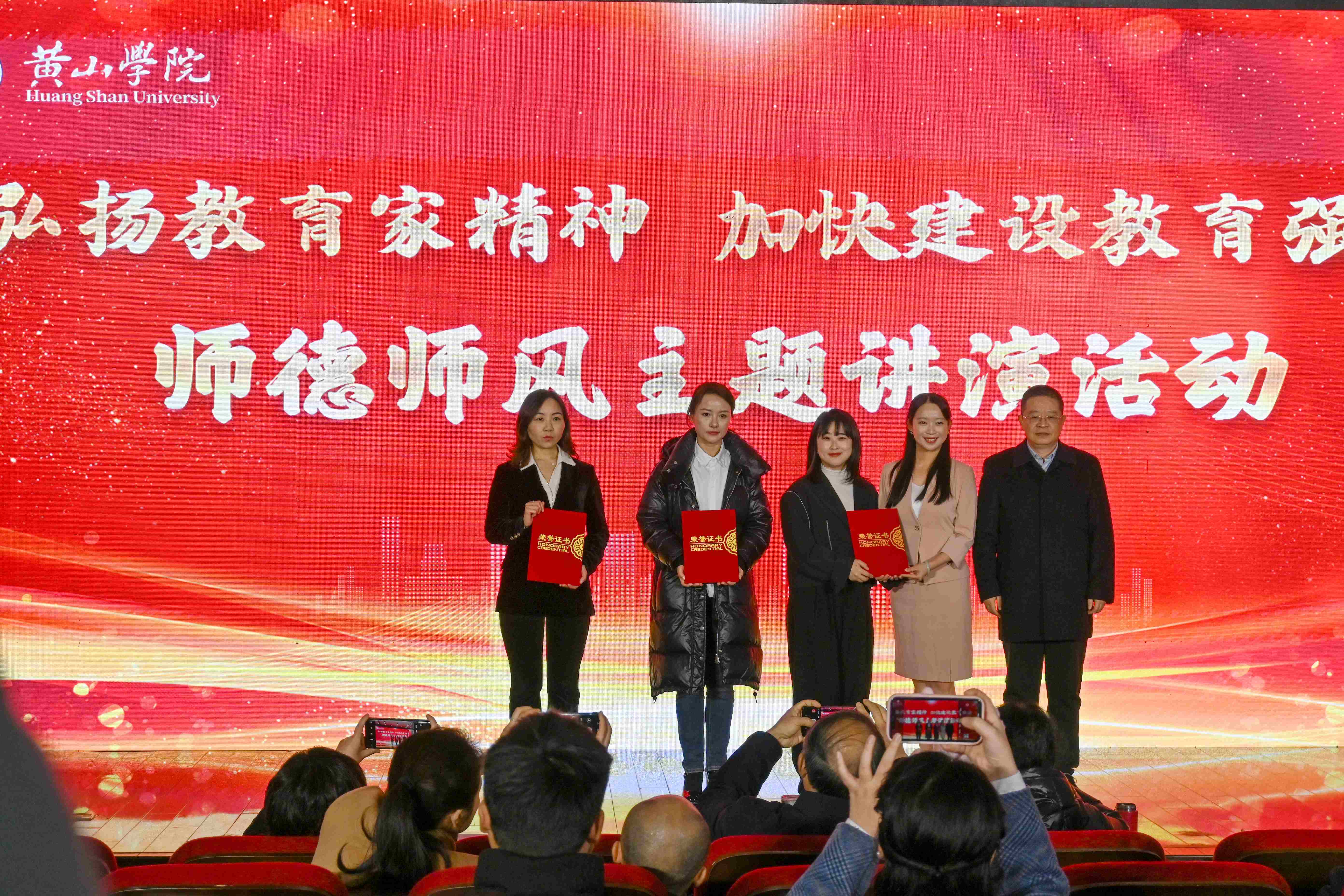 本次师德师风主题讲演活动是我校2024年“弘扬教育家精神”师德主题教育系列活动之一,是深化我校师德建设工作的重要举措之一,旨在以思想政治为引领,引导教师努力践行教育家精神,躬耕教坛,为教育强国建设贡献力量。参演及观摩教师纷纷表示,此次师德师风主题讲演活动形式多样,内容丰富,不仅是一次演出,更是一堂生动的师德主题思政课,是一场深刻的师德师风教育和精神洗礼。在今后的工作生活中,将深入学习领会习近平总书记在全国教育大会上的重要讲话精神,在理论和实践中涵养高尚师德,弘扬教育家精神,提升自我、潜心育人,努力为培养堪当民族复兴重任的时代新人作出贡献。