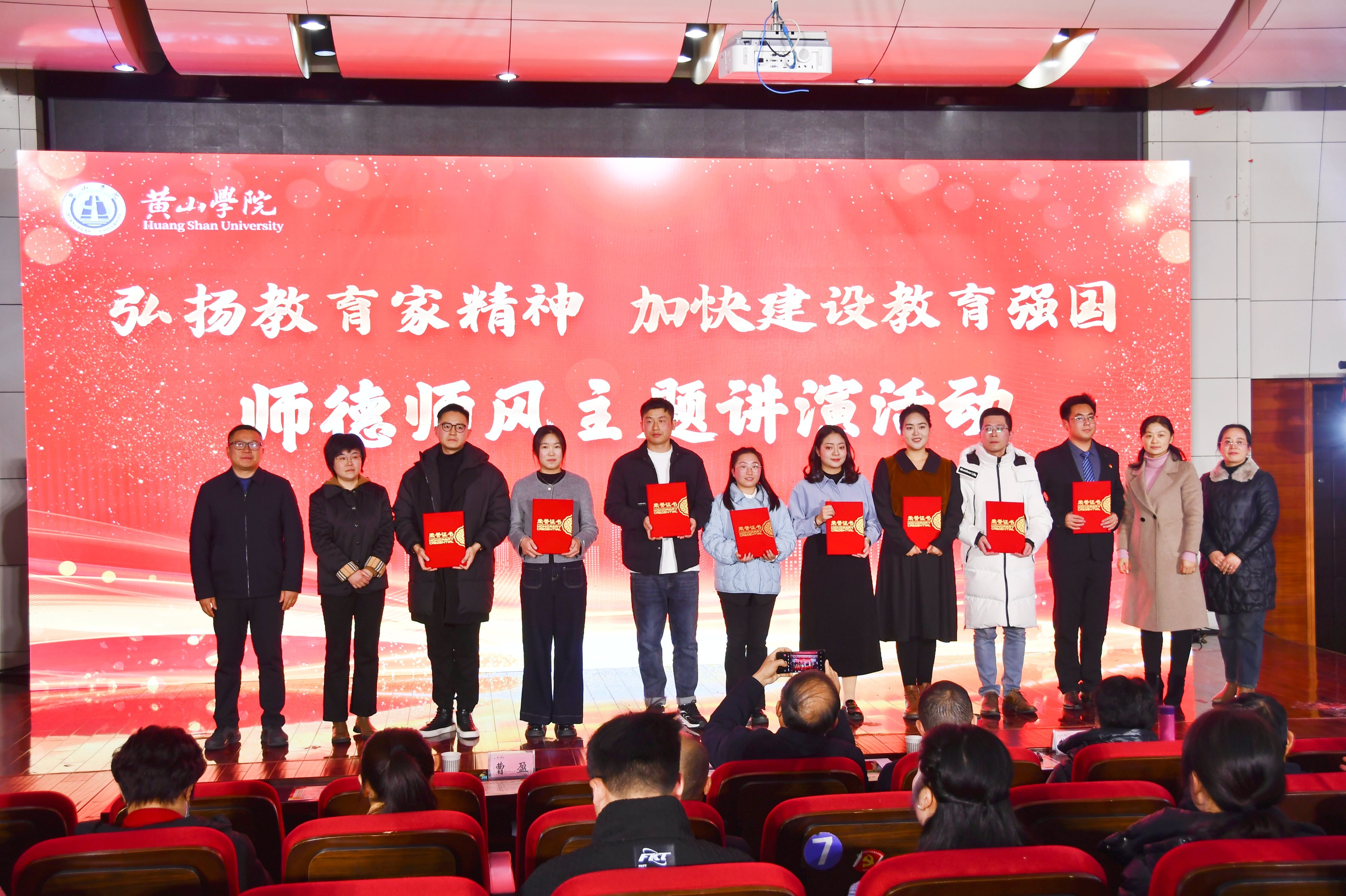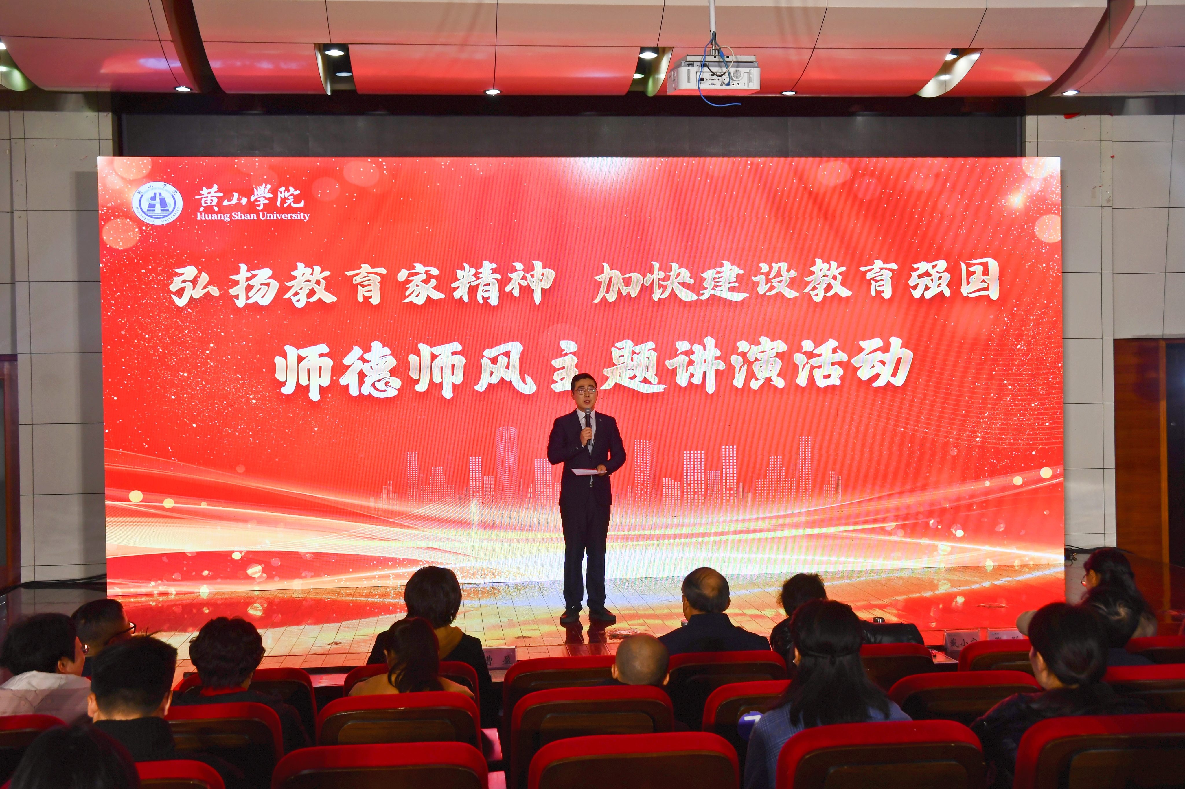 为深入学习贯彻落实全国教育大会精神和习近平总书记关于教育的重要论述,大力弘扬教育家精神,加强教师队伍师德师风建设,12月26日,我校在逸夫图书馆二楼报告厅举办“弘扬教育家精神 加快建设教育强国”师德师风主题讲演活动。教师工作委员会成员单位负责人、各分党委(党总支)书记、各党支部书记、2024年新进教师及教师代表200余人现场观看。