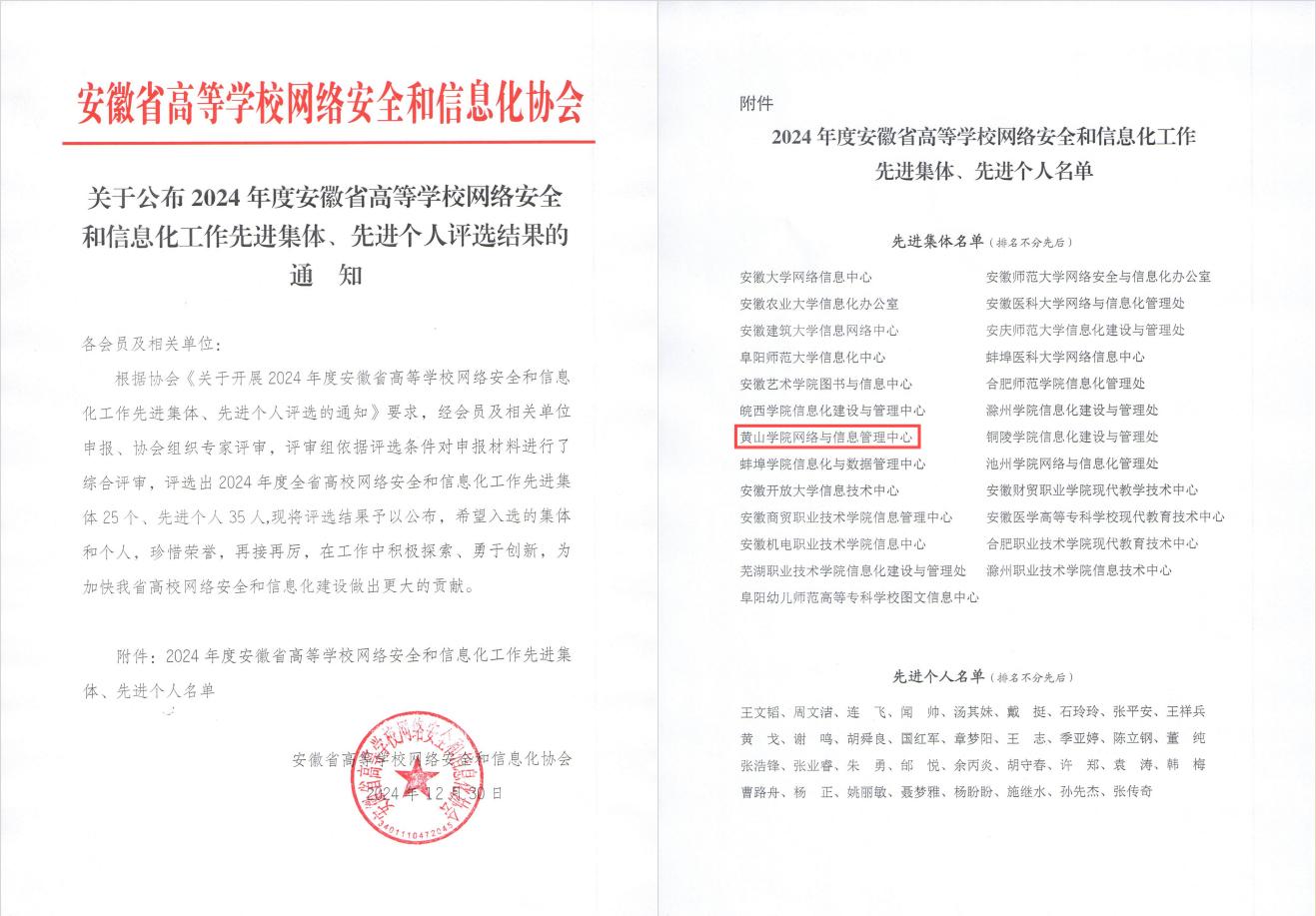 本次评选由安徽省高等学校网络安全和信息化协会组织专家,对全省的网络安全及信息化工作开展综合评价。经高校申报、协会组织专家评审,最终评定25个单位为网络安全和信息化工作先进集体,安徽大学、黄山学院等榜上有名。