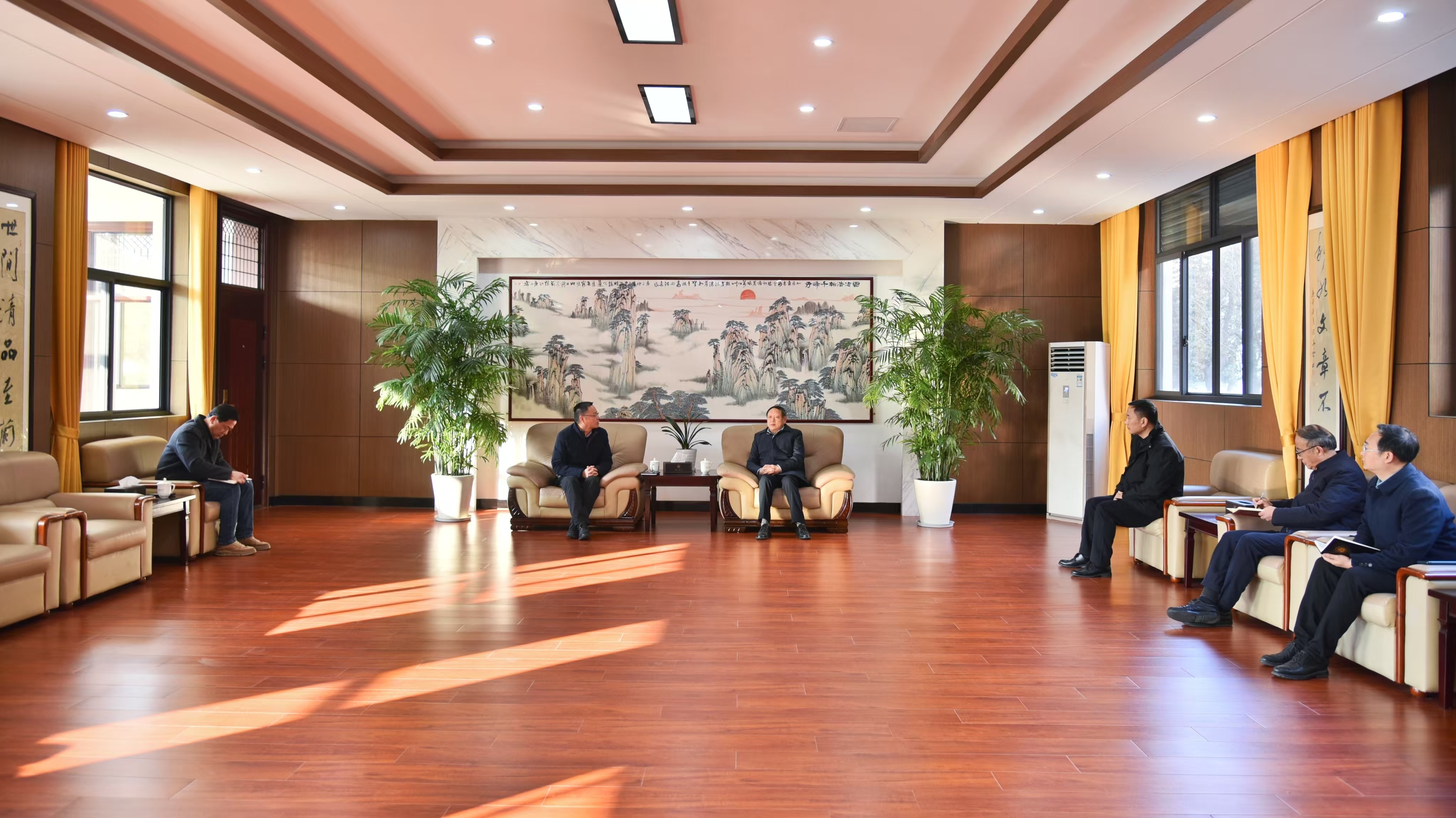 1月2日上午,中国移动通信集团安徽有限公司黄分公司党委书记、总经理陈曾胜一行来校座谈交流。校党委书记李铁范在文昌楼一楼接待室与陈曾胜进行了座谈。中国移动通信集团安徽有限公司黄分公司屯溪营销中心总经理林云辉,校办公室、宣传部、发展规划与社会合作处负责人参加座谈会。