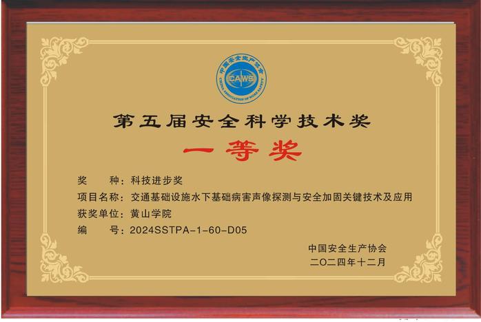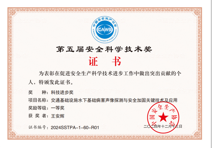 近日,中国安全生产协会发布了2024年度中国安全生产协会第五届安全科学技术奖获奖结果,我校建筑工程学院教师王安辉博士、郭飞博士参与完成的“交通基础设施水下基础病害声像探测与安全加固关键技术及应用”项目荣获科技进步奖一等奖,王安辉博士为第一完成人。