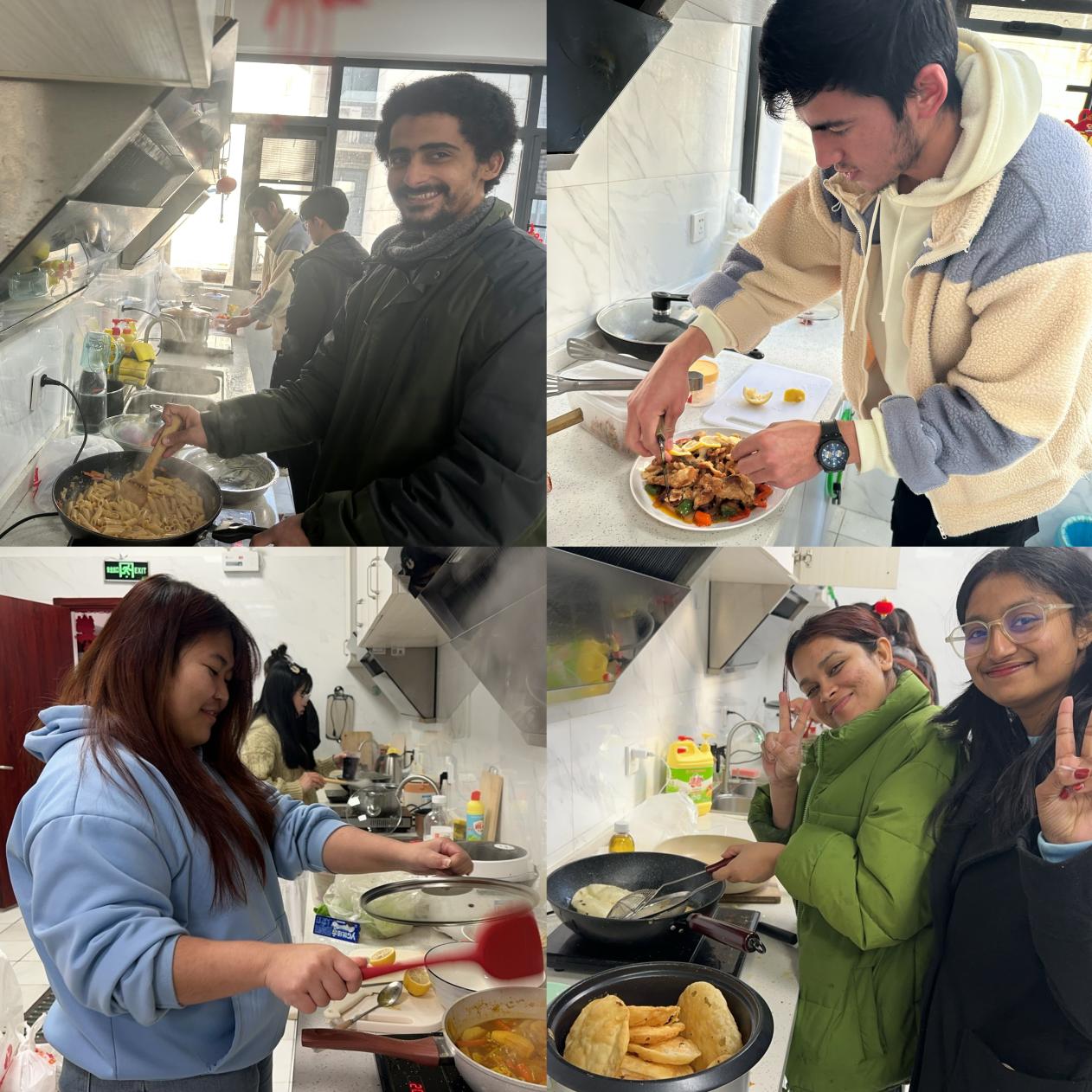 活动前,国际教育学院精心策划,准备了丰富的食材。留学生们热情参与,各展厨艺,将家乡的味道与中华美食巧妙融合,烹饪出一道道独具特色的佳肴。厨房内锅碗瓢盆交响,香气弥漫,欢声笑语此起彼伏。