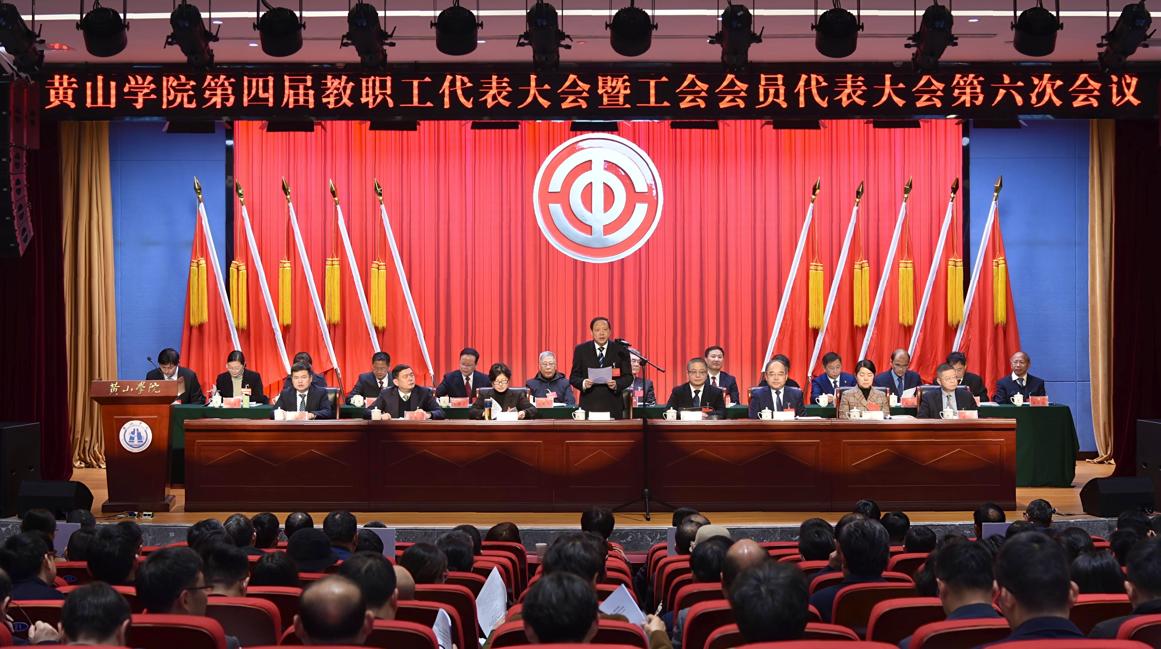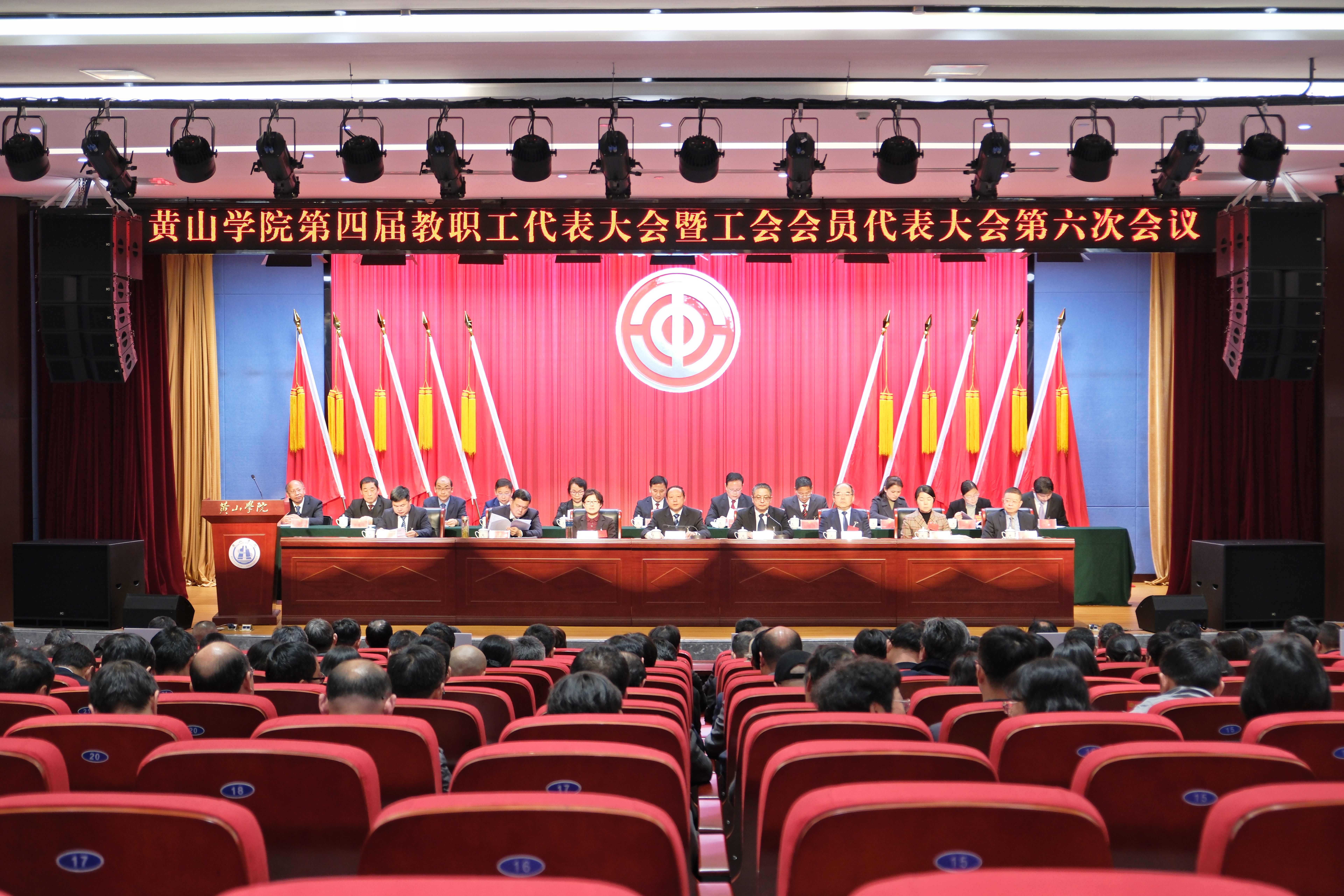 梅绽枝头春意盎然,香溢校园景色如画。3月1日,黄山学院在文博楼二楼报告厅召开第四届教职工代表大会暨工会会员代表大会第六次会议。校领导、全校教职工代表、工会会员代表们精神饱满,齐聚一堂,共商学校发展大计。校党委书记李铁范作总结讲话,党委副书记、院长李庆宏作学校工作报告。