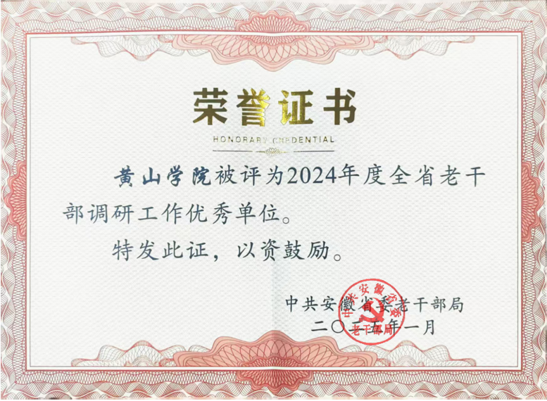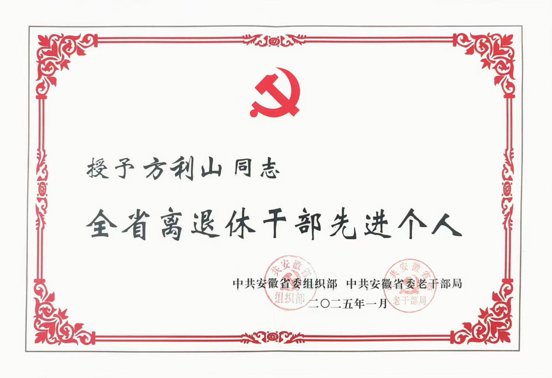 日前,我校在2024年度安徽省老干部调研、宣传、信访工作评选中荣获“2024年度全省老干部调研工作优秀单位”荣誉称号;方利山同志获“全省离退休干部先进个人”荣誉称号。