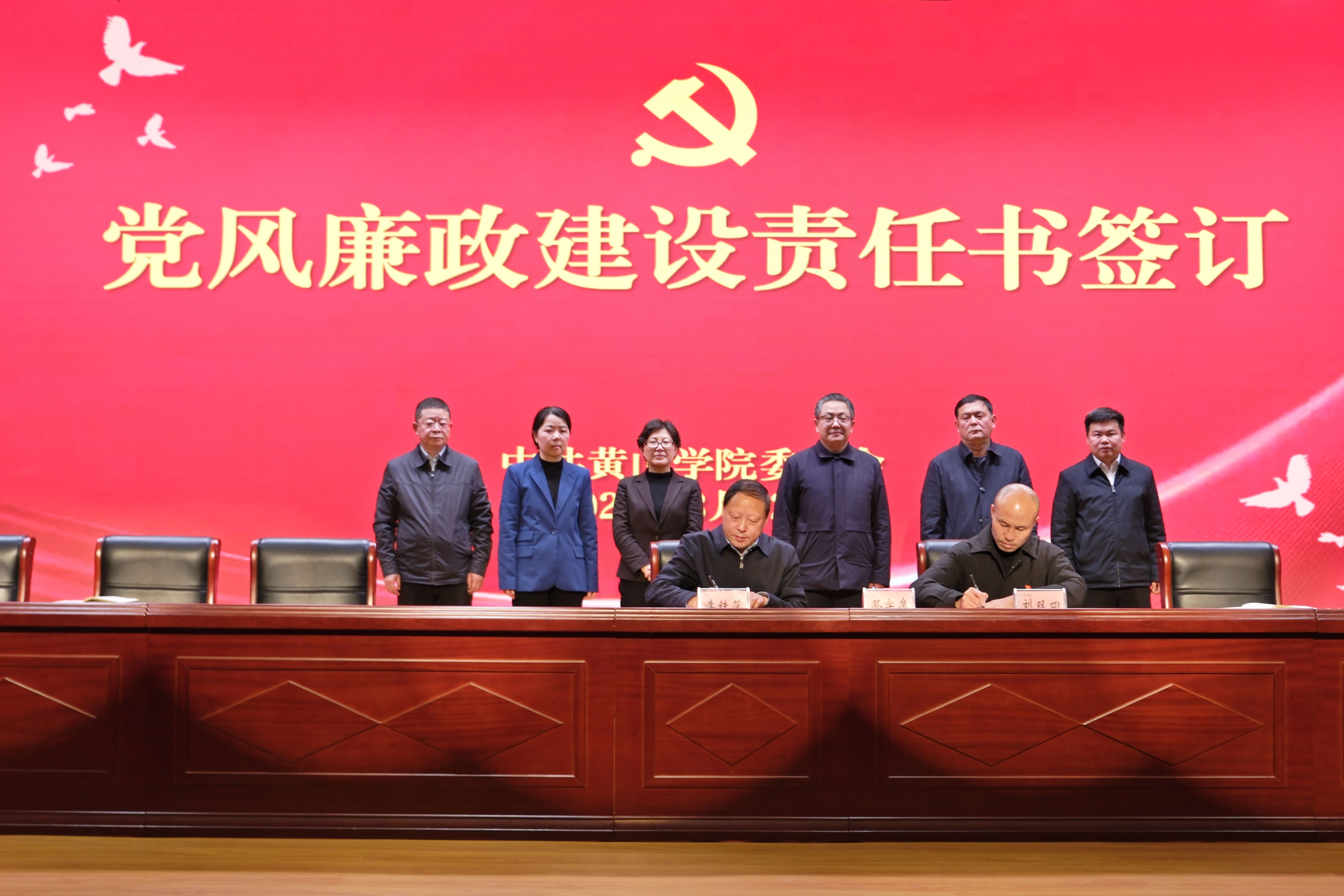 发展规划与社会合作处、数学与统计学院、团委、建筑工程学院相关负责人分别代表部门、学院签订2025年党风廉政建设责任书、意识形态工作责任书。